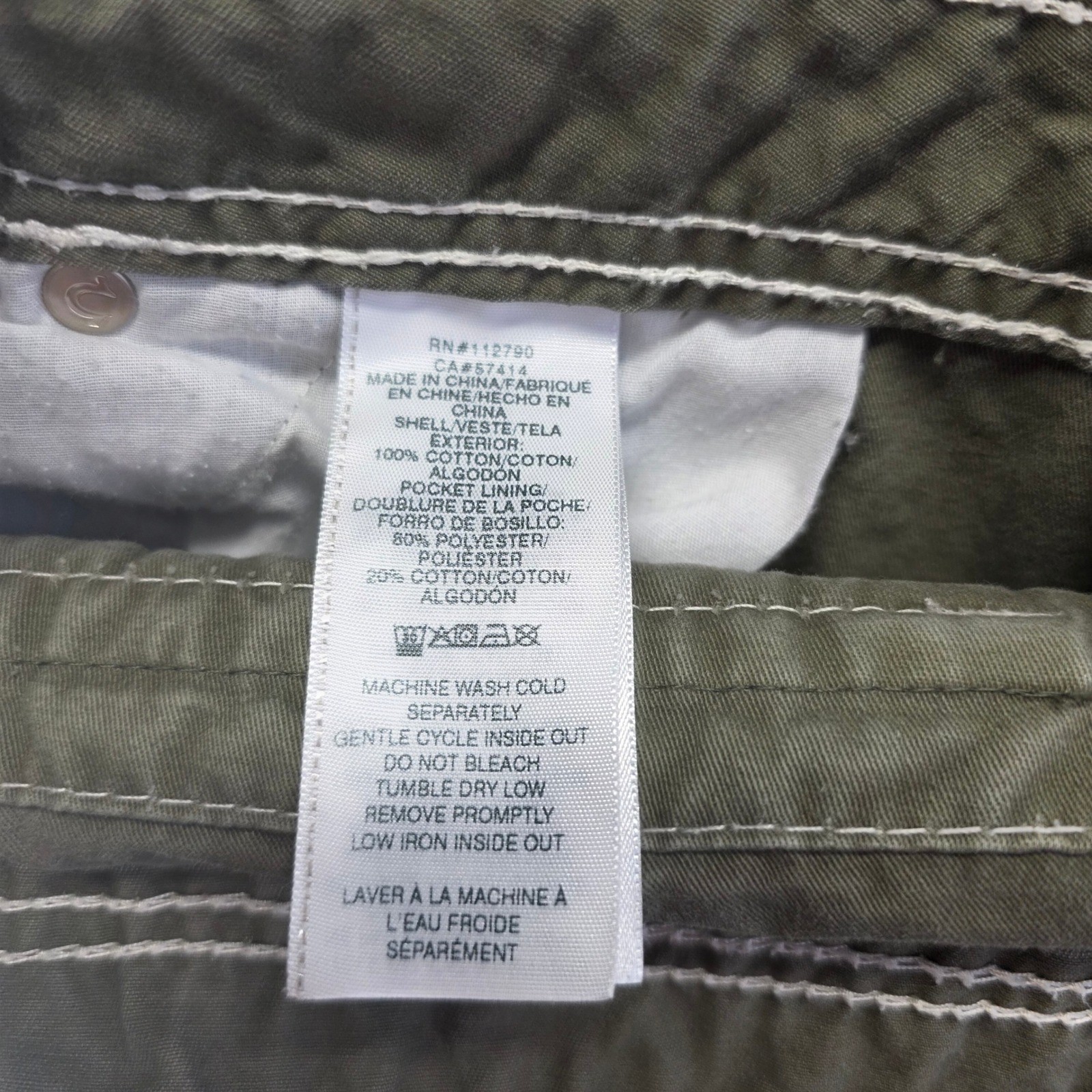 True Religion Mens Cargo Pants Green Contrast Stitch Big T Horseshoe Size 36