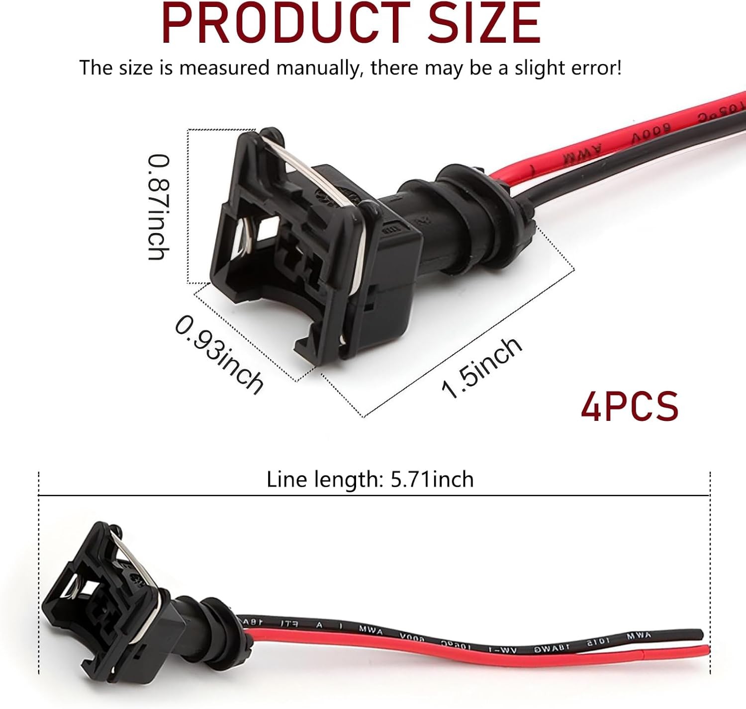 4 PCS Automotive Injector Connector, Waterproof Fuel Injector Socket with Extend