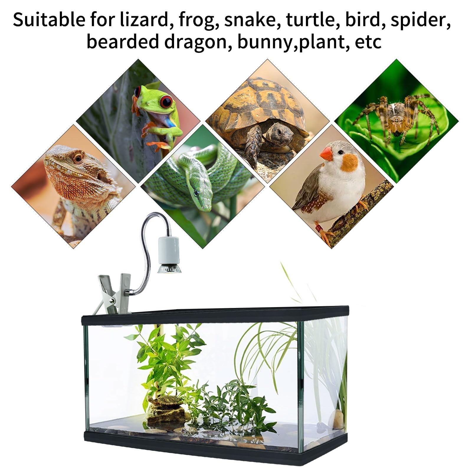 Reptile Heat Lamp,UVA UVB Reptile Light with 360 Rotatable Hose and Timed wit...