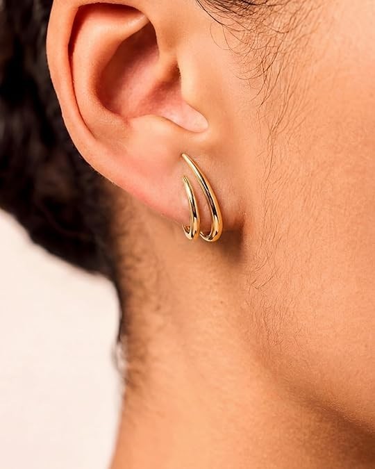 как выглядит Gold Earrings for Women Trendy 14K Gold Plated Stud Earrings Dainty Minimalis... фото