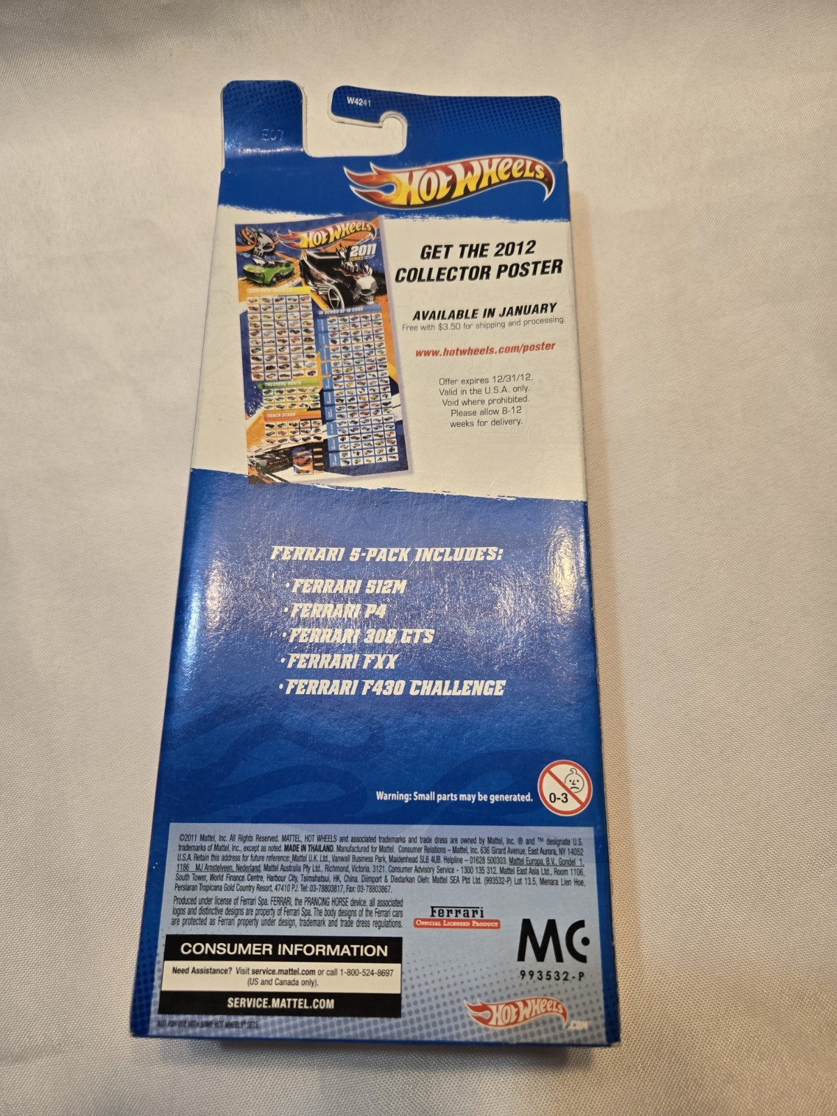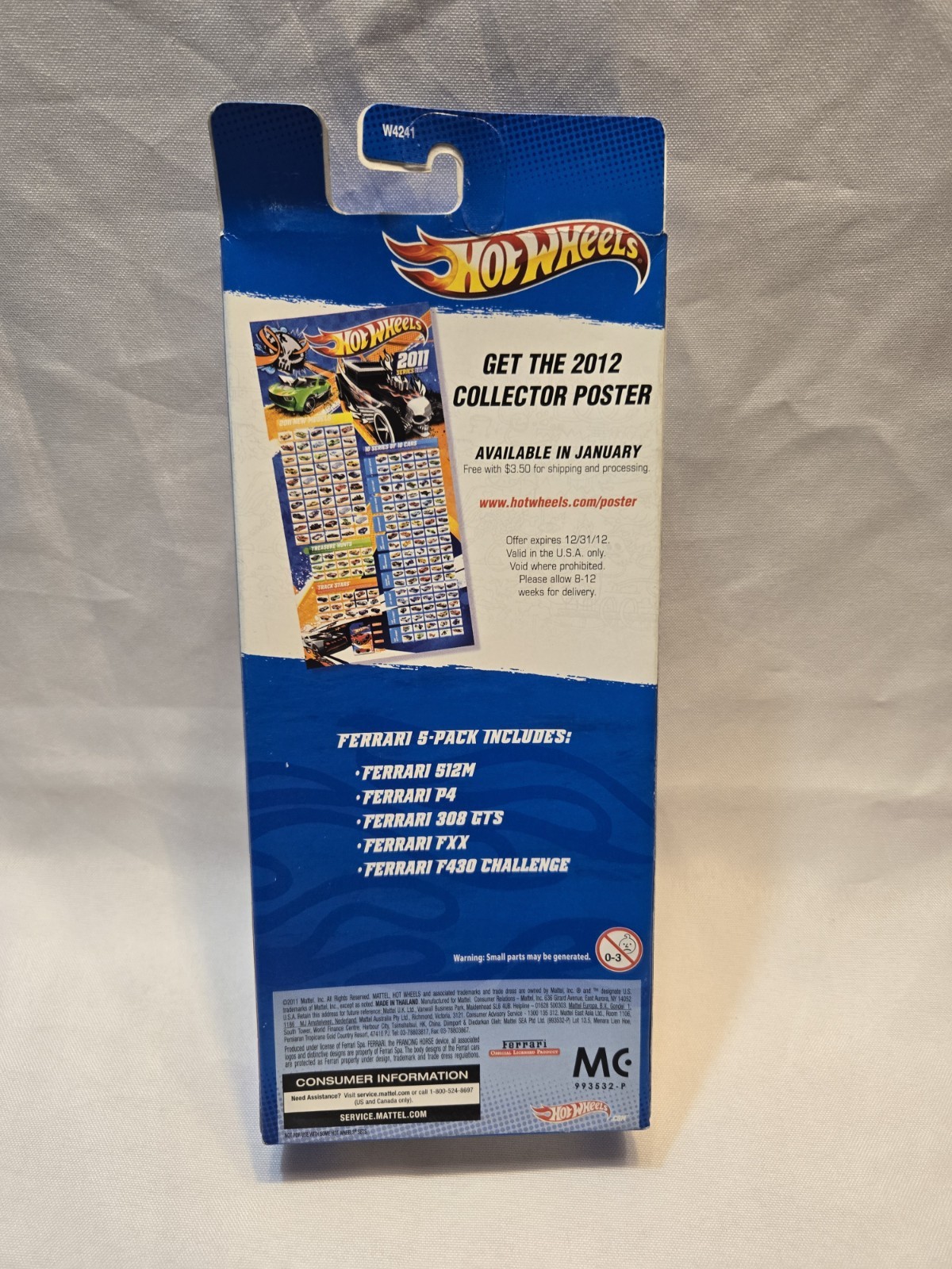 New In Package 2011 Hot Wheels Ferrari 5 Pack Includes 512M, P4, 308 GTS FXX
