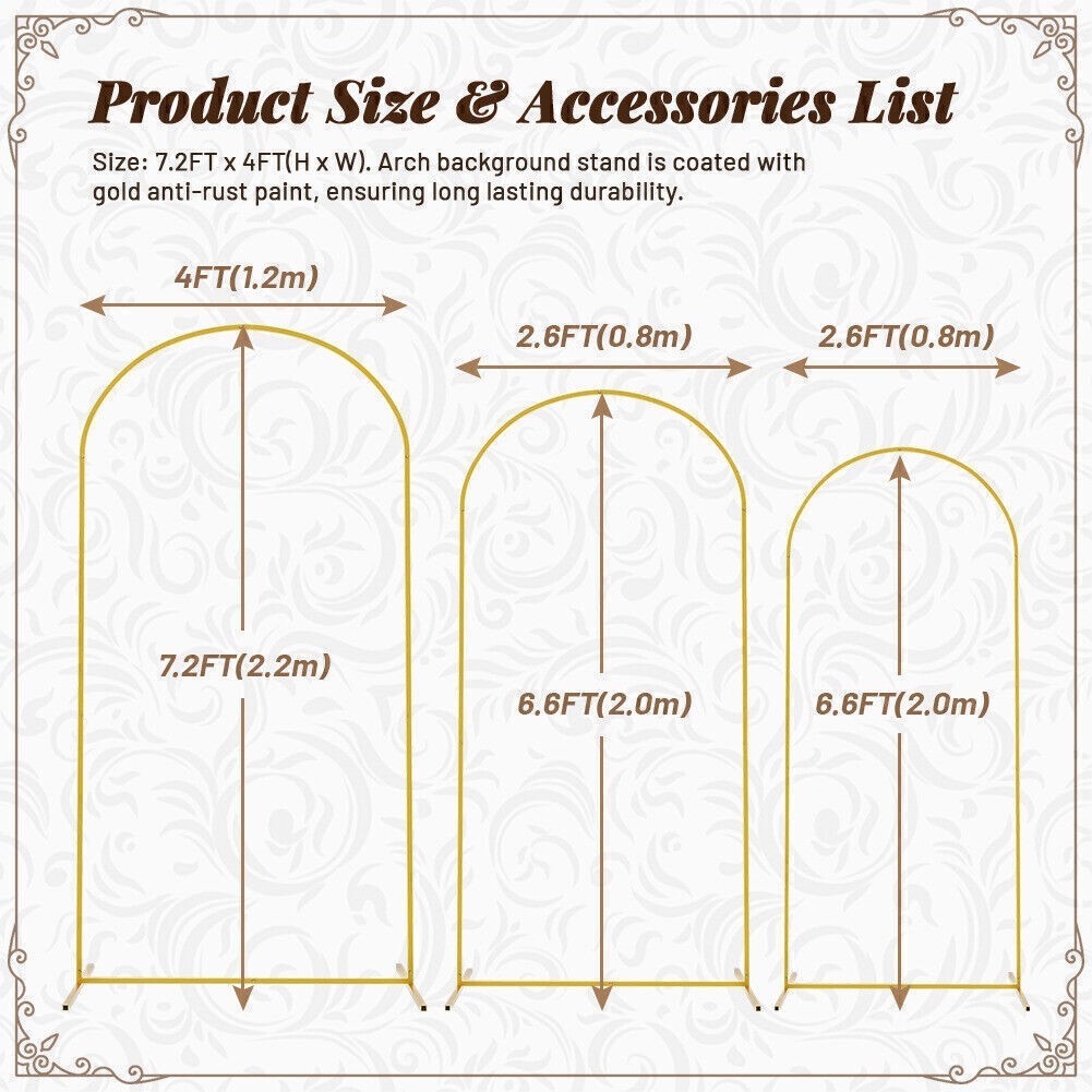 for Wedding Garden Decoration Backdrop Stand 7.2FT, 6.6FT, 6FT Golden Metal Arch
