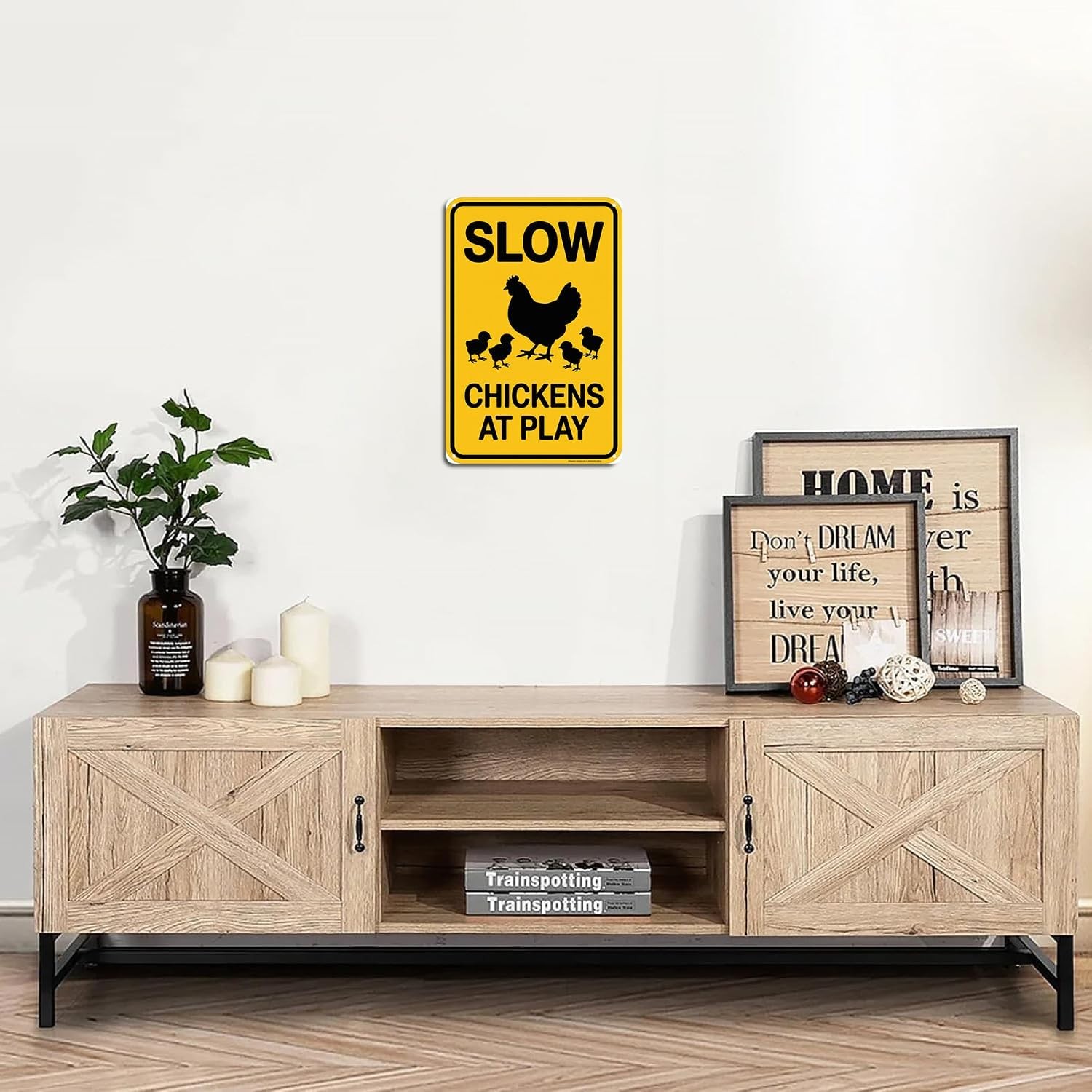 как выглядит Slow Chickens at Play Crossing Warning Tin Metal Signs Home D cor Vintage Chicke фото