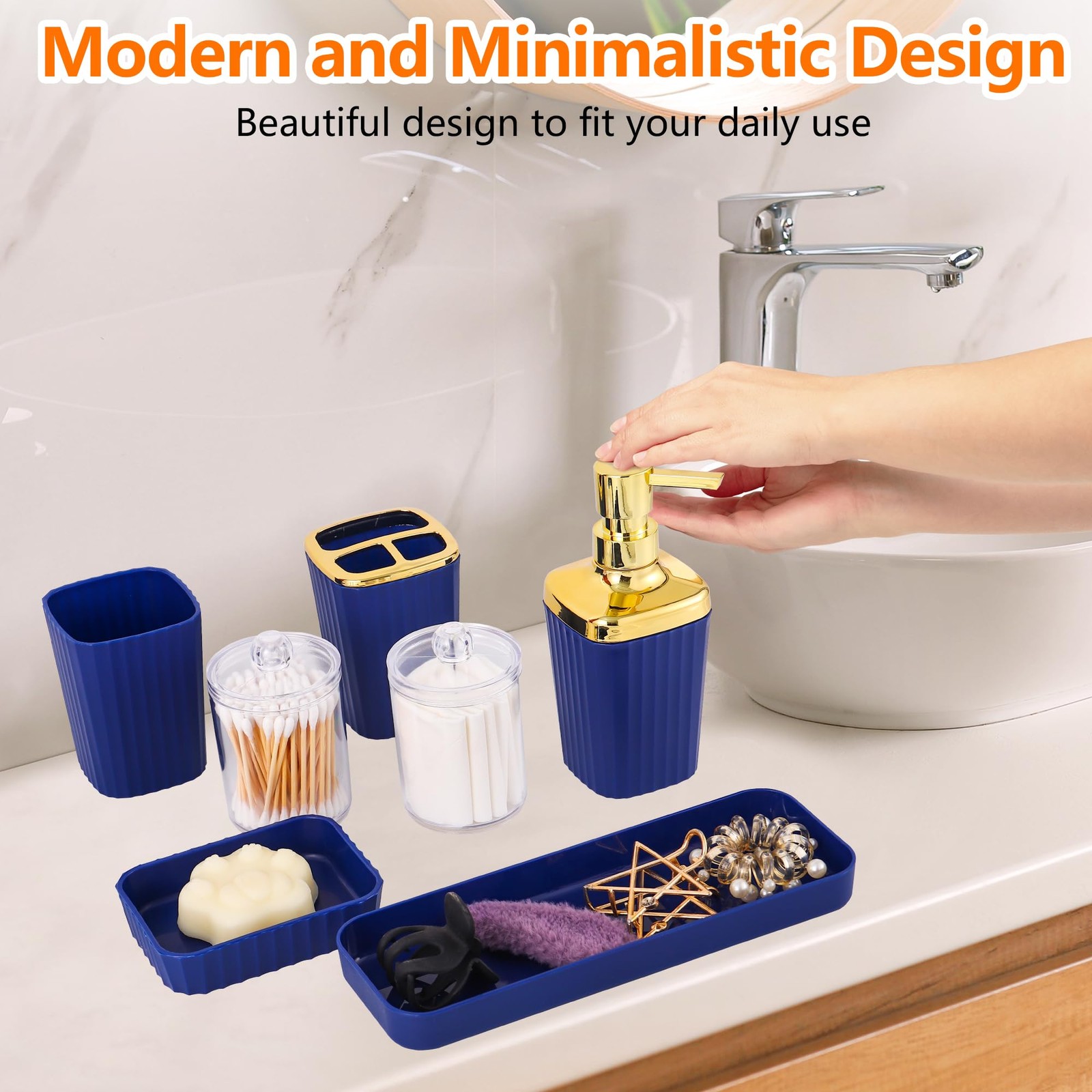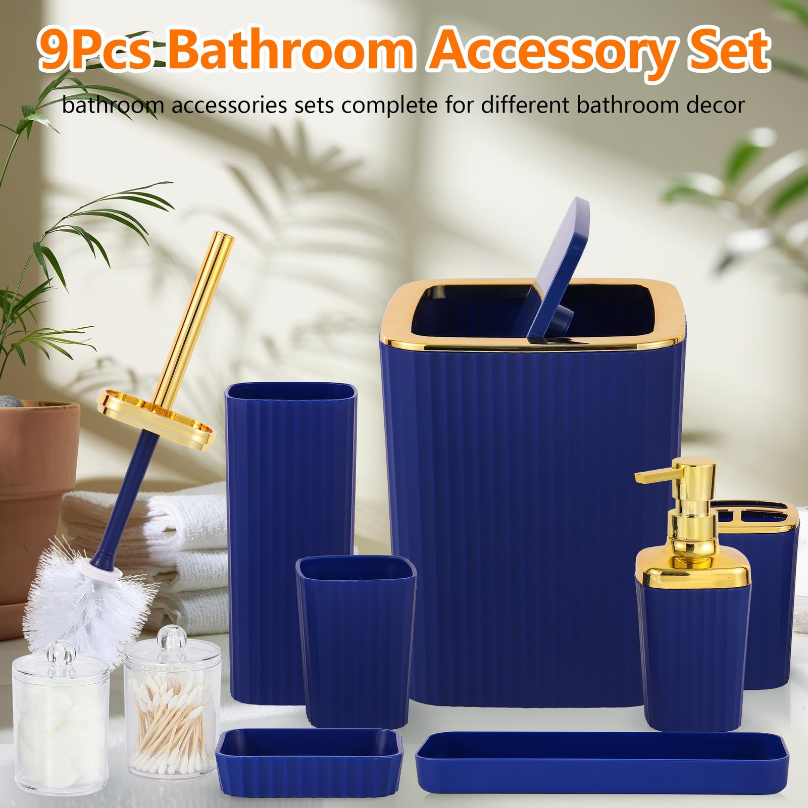 Bathroom Accessory Set,9 Pieces Navy Blue Bathroom Set with Trash Can, Toothb...