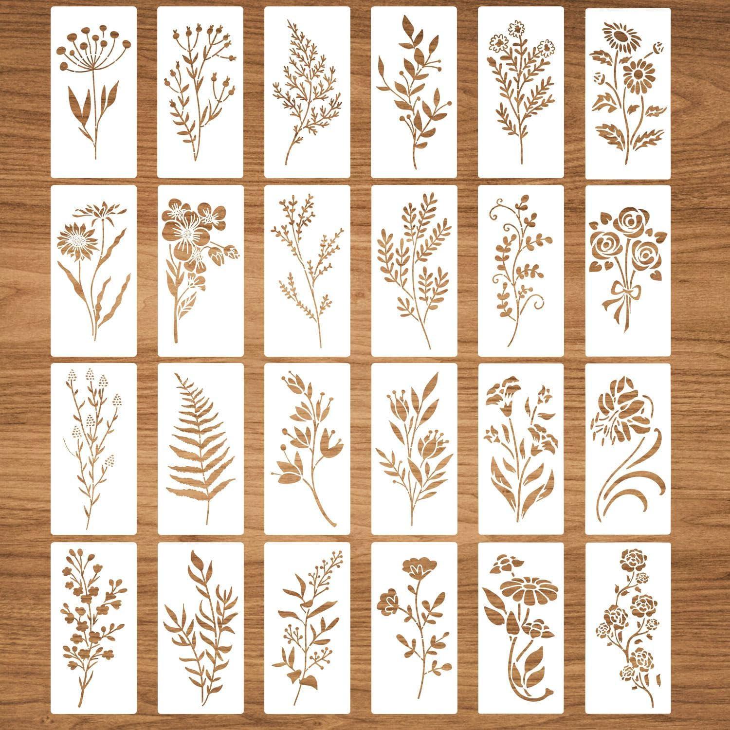 24Pcs Wildflower Stencils for Painting, Reusable Leaves and Flower Stencil Flora