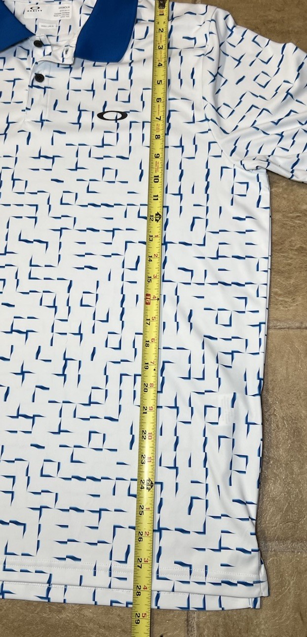как выглядит Oakley Divisional Print Polo Shirt Mens Large White Blue Hydrolix Regular Fit фото