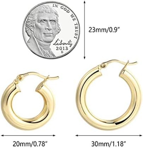 как выглядит 14K Gold Plated Hoop Earrings for Women Hypoallergenic Thick Chunky Hoop Earr... фото