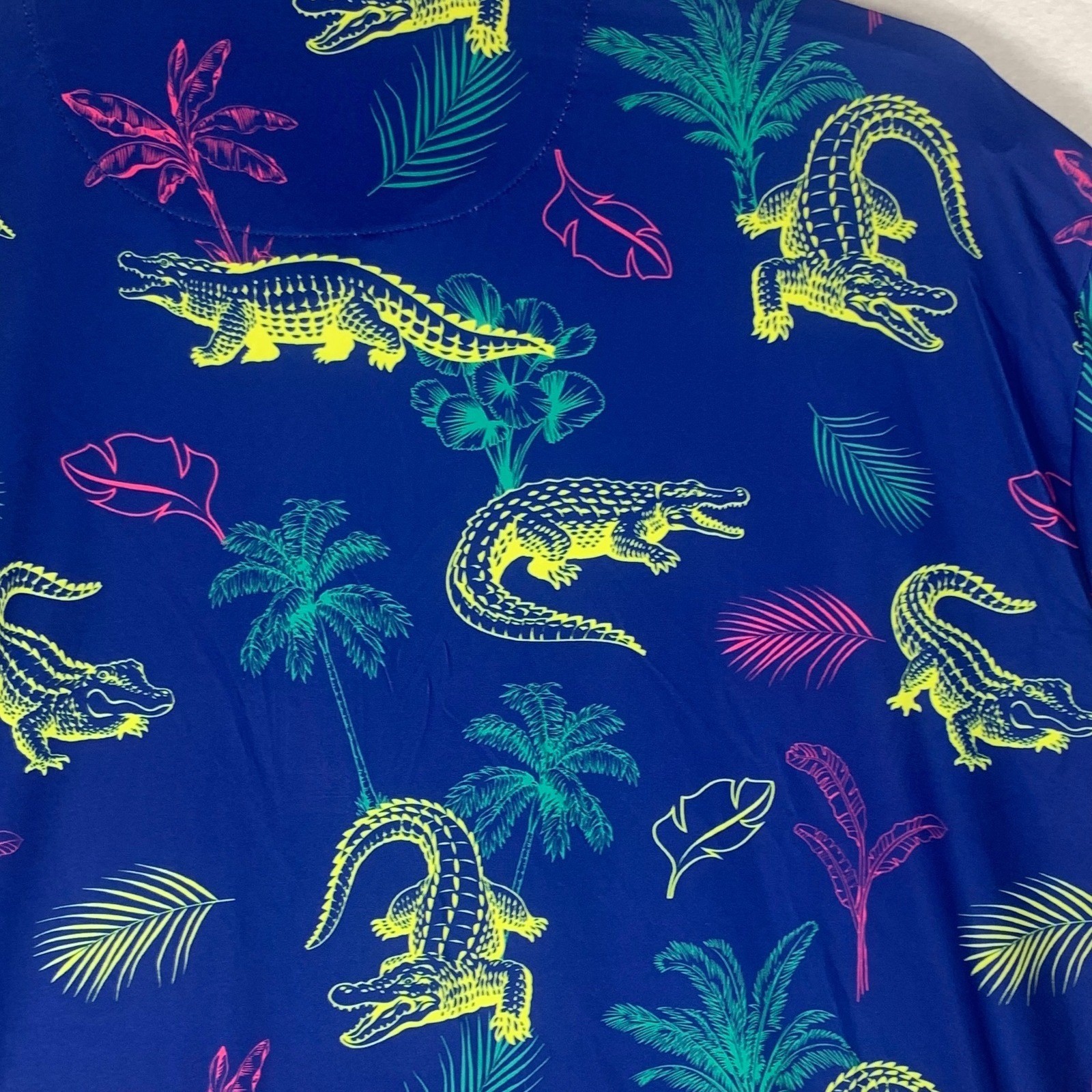 как выглядит Birdie Bound Golf Polo Shirt Mens 3XL Blue Alligator Print Stretch Performance фото
