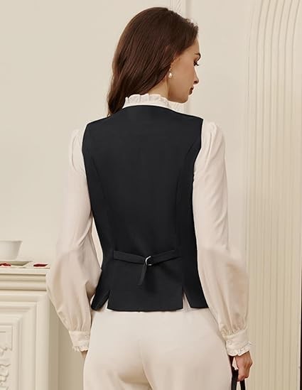 Vintage Women's Waistcoat Sleeveless Surplice V-Neck Vest with Pockets Black S