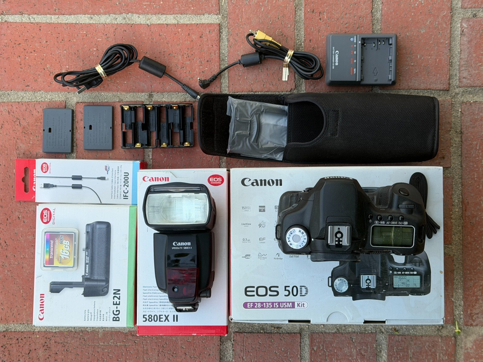 как выглядит CANON EOS 50D 15.1MP DSLR Camera Black EF 28-135mm f/3.5-5.6 BATTERY GRIP-FLASH фото