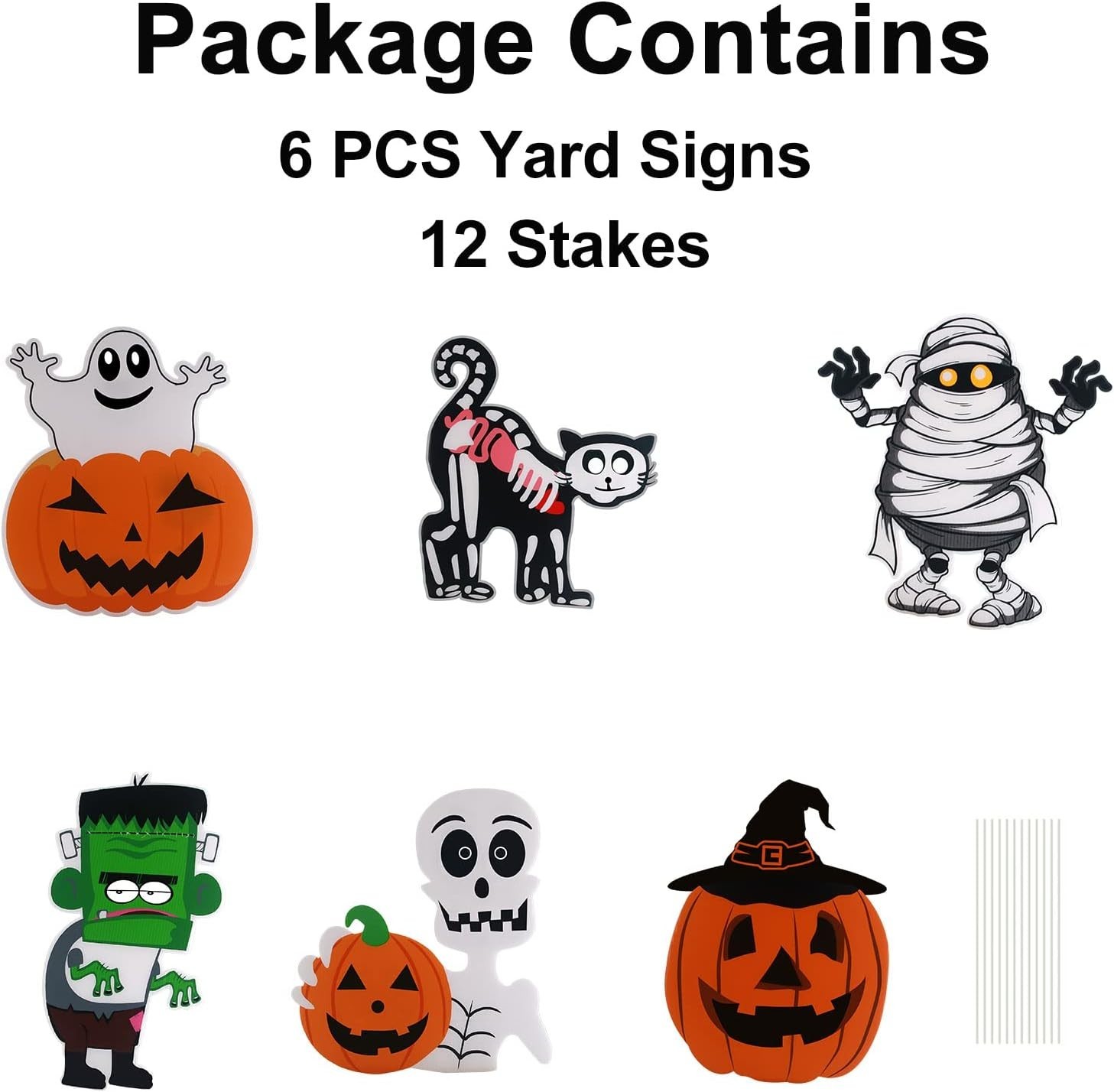 Included Components: 6 Pcs Halloween Yard Signs, 12 Pcs Stakes