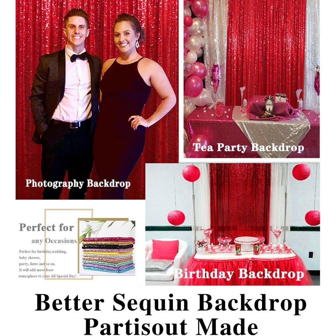 7FT x 4Ft Red Sequin Photo Backdrop Background
