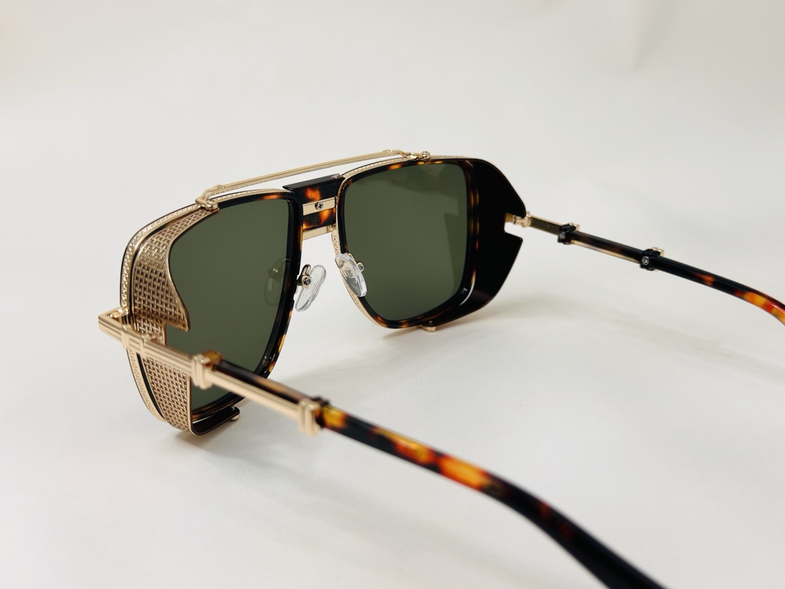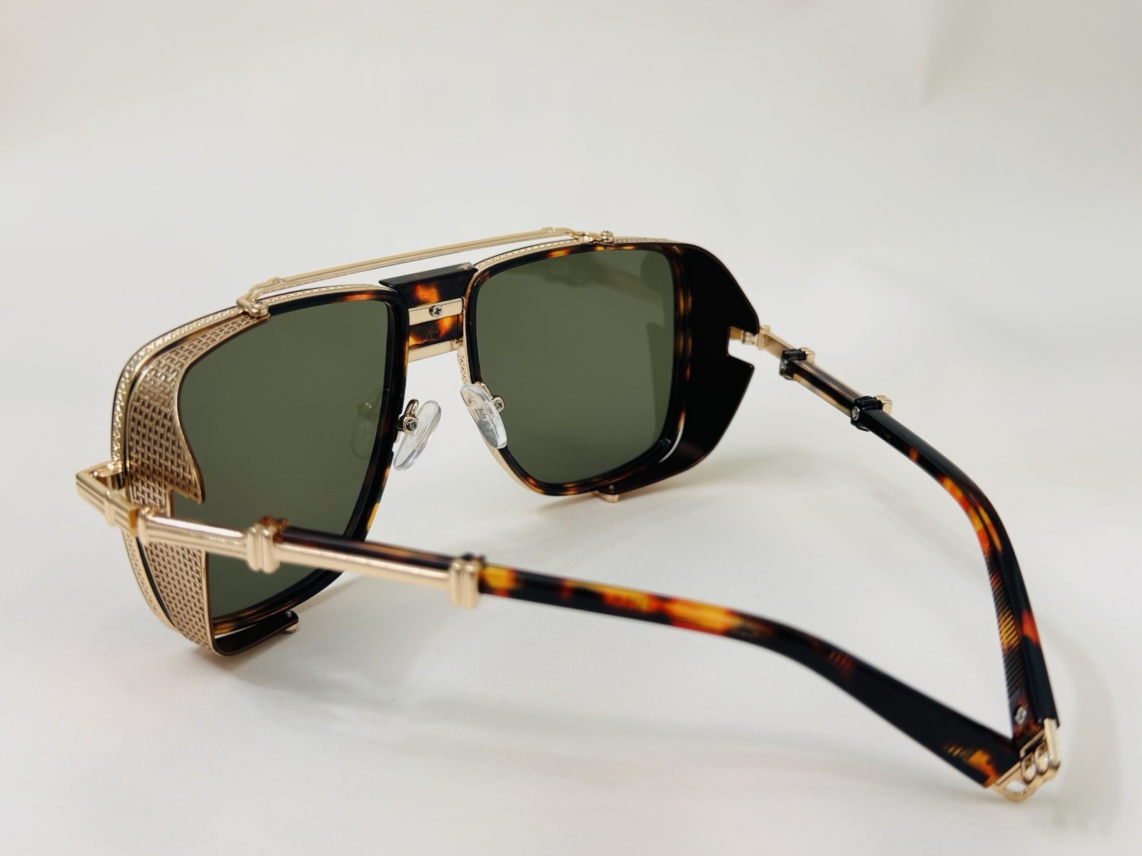 Luxury Steampunk Square Sunglasses Green Lens Pilot Vintage Gold Frame Desig