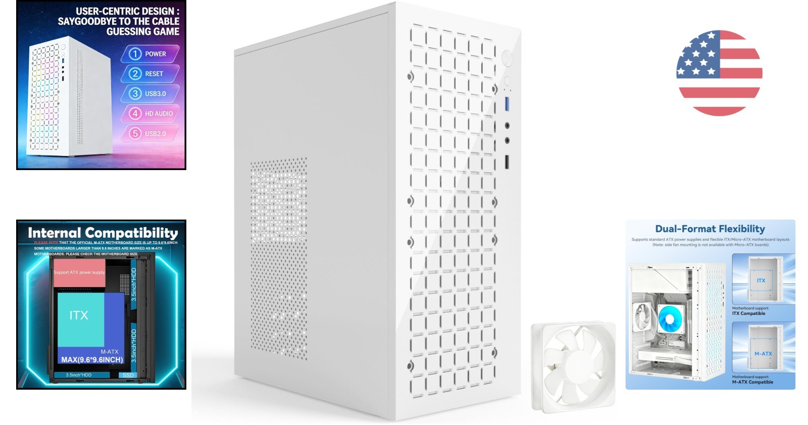 Air-Flow Enhanced Micro ATX PC Case, Supports 260mm GPU, Stylish White Finish