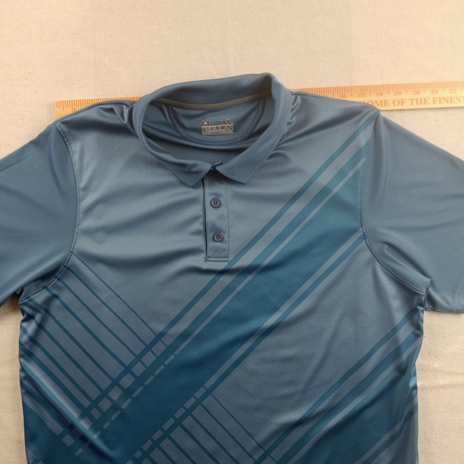 Under Armour Men s Heat Gear Blue Diag Stripe Short Sleeve Golf Polo Shirt XL