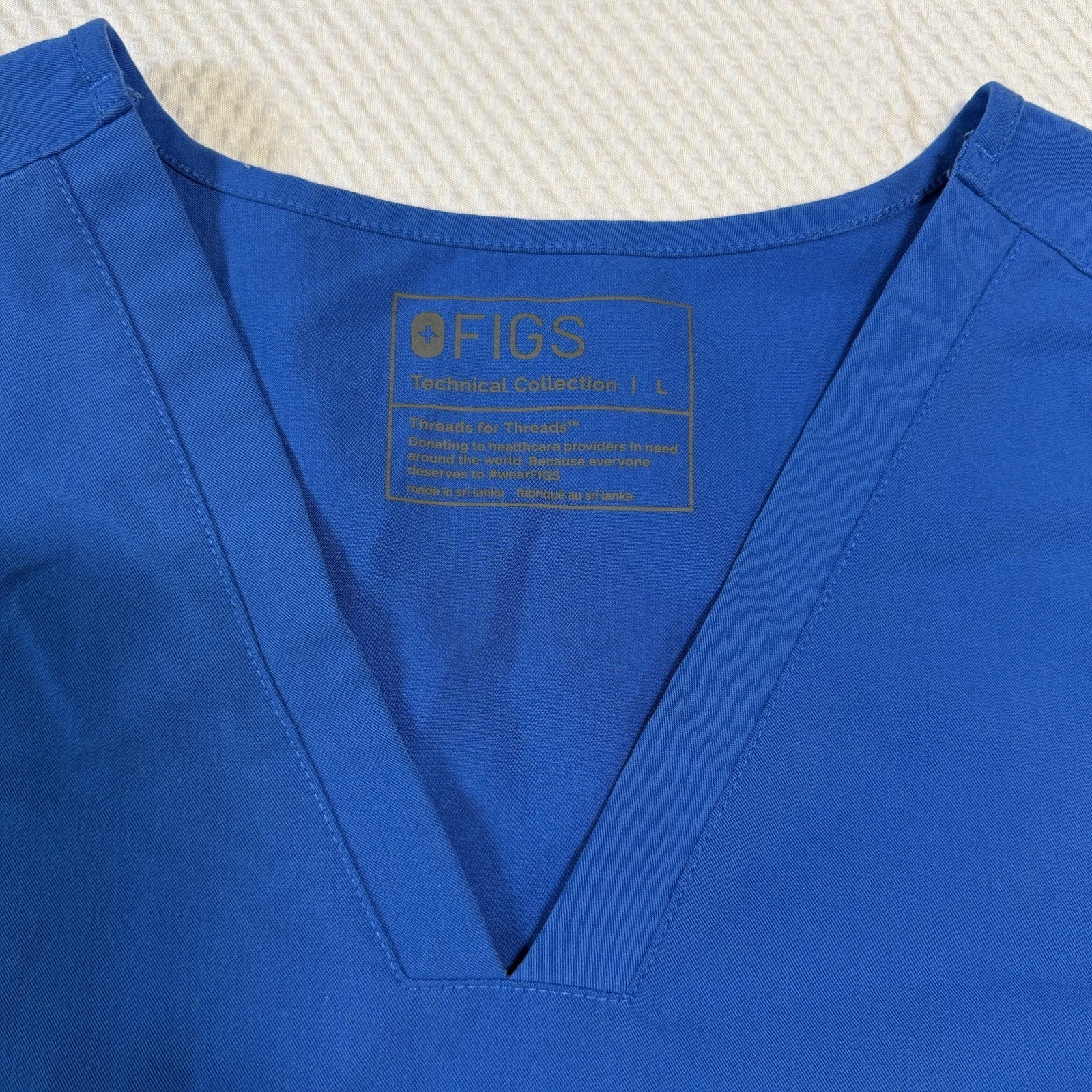 как выглядит FIGS Casma Three Pocket Scrub Top Womens Large Royal Blue PO 3096 FW1100 EUC фото