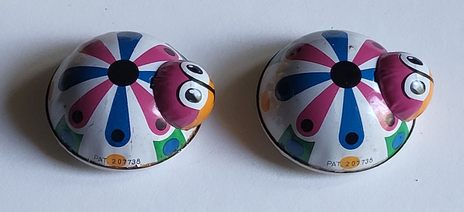 как выглядит Bug a Boo Whitman Tin 2 Ladybug Toys - 2" Friction Powered 1960