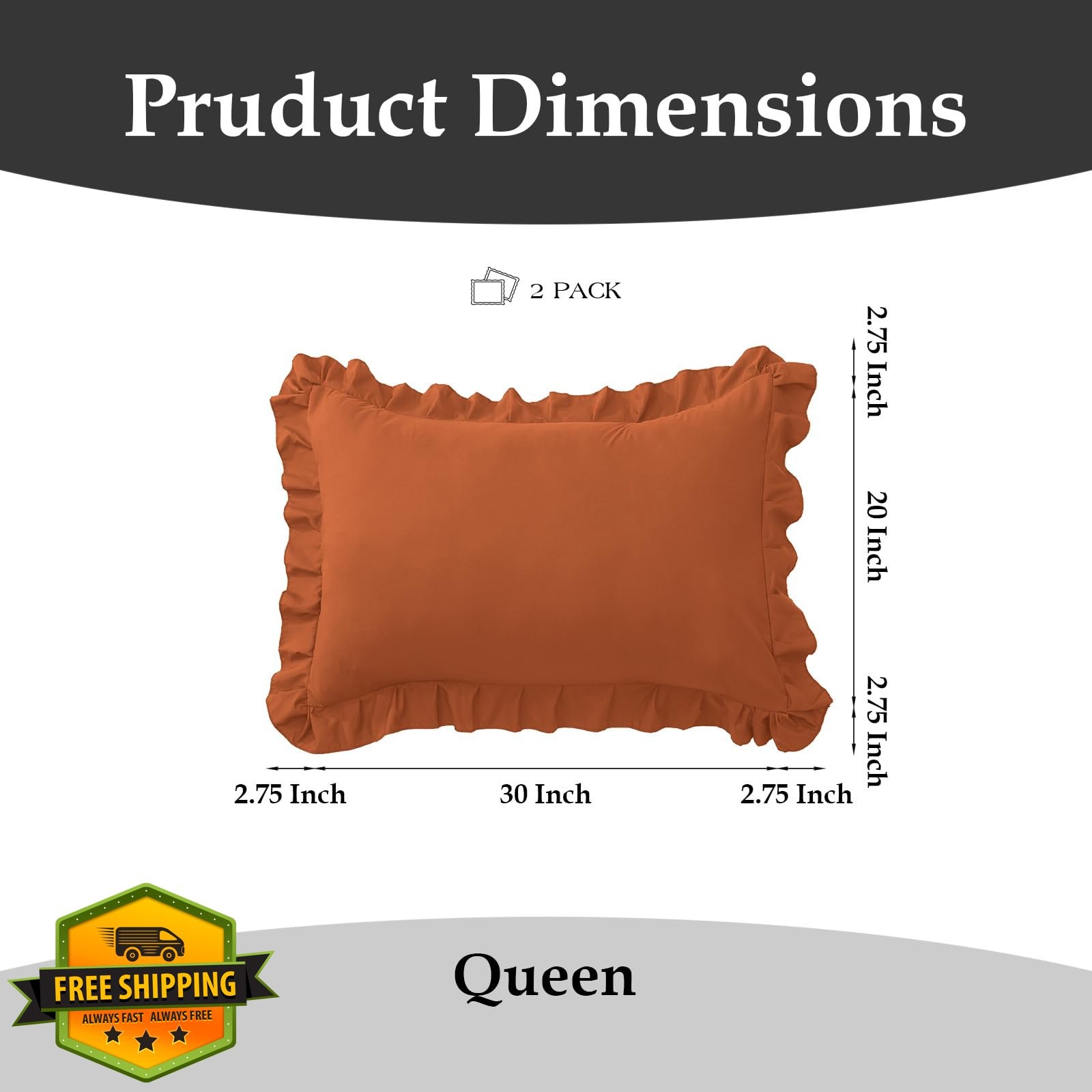 FMLIUY Ruffle Pillow Cases Queen 20x30 Tangerine Set of 2 Microfiber Shams
