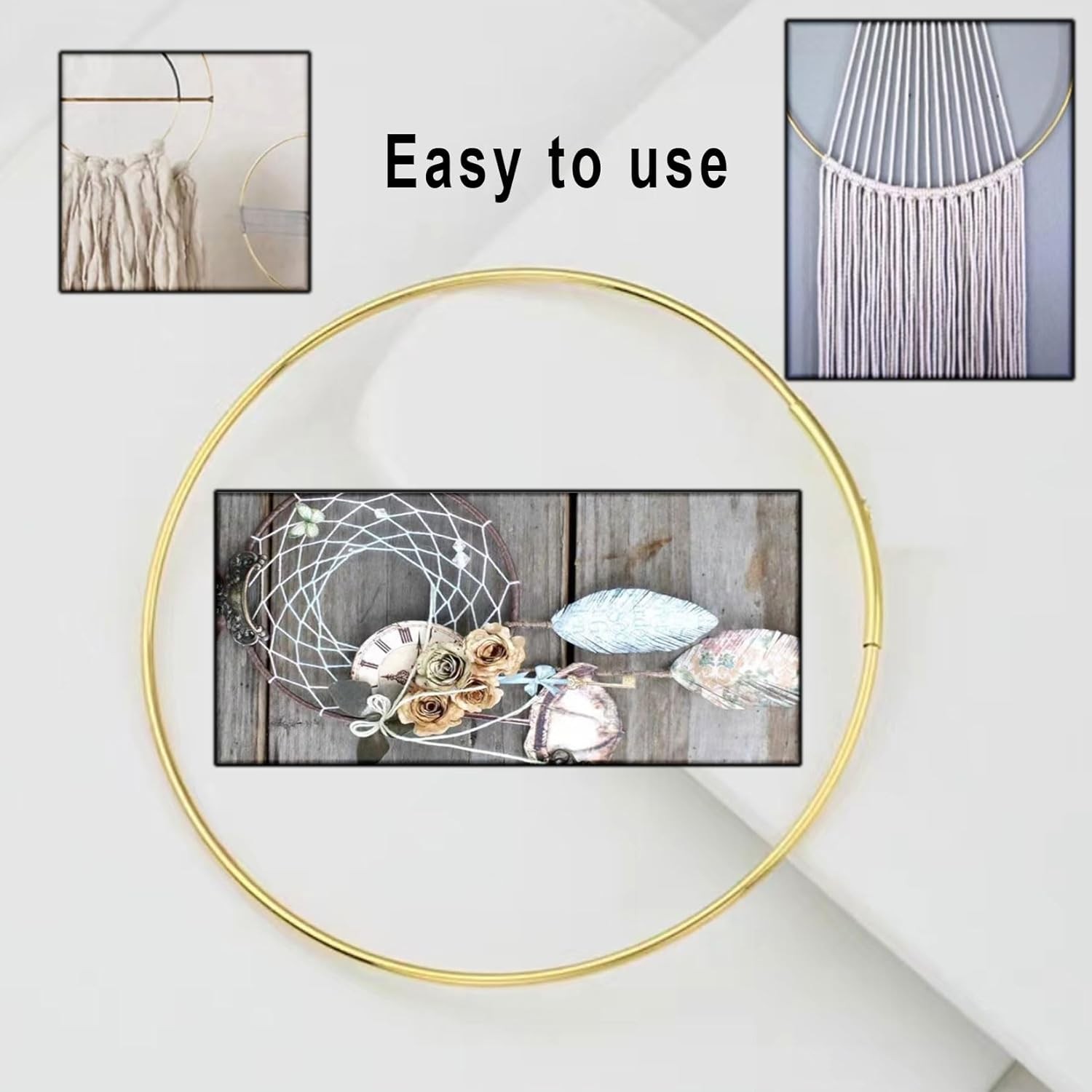Floral Wreath Hoops - 10PCS Metal Rings for Wall Hanging Crafts, Gold