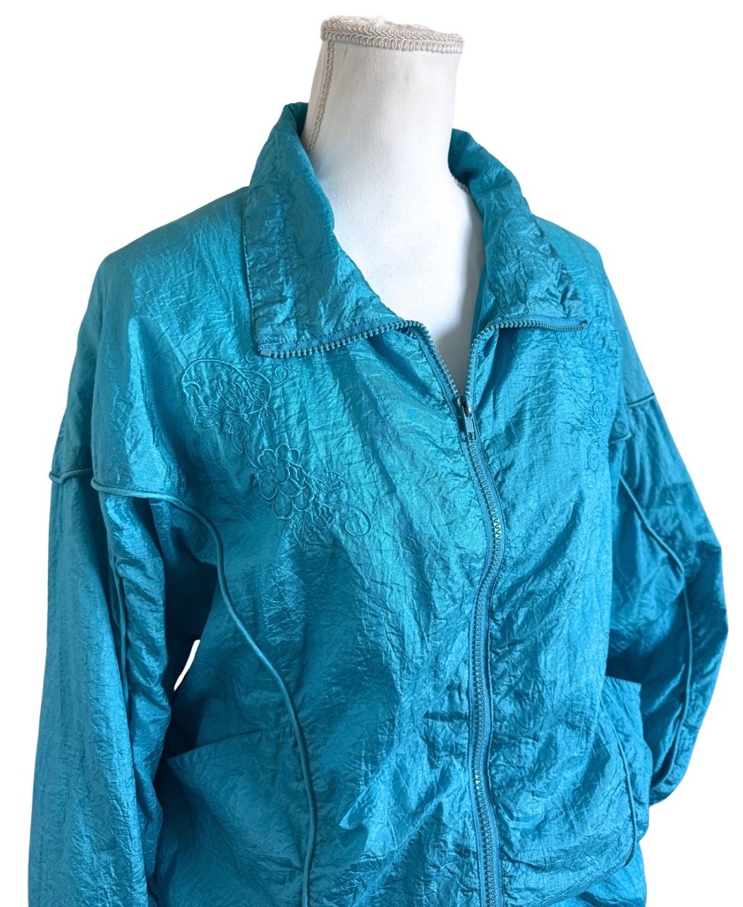 Vintage 90s Shell Shock Teal Tracksuit Set Womens L Windbreaker Jogger