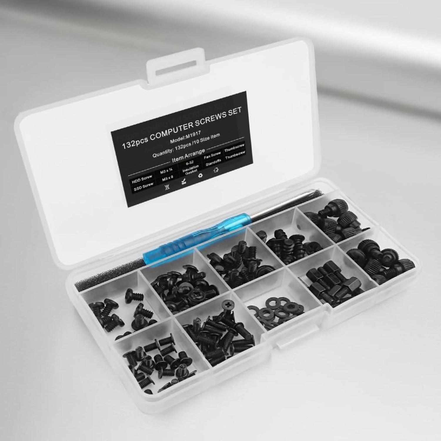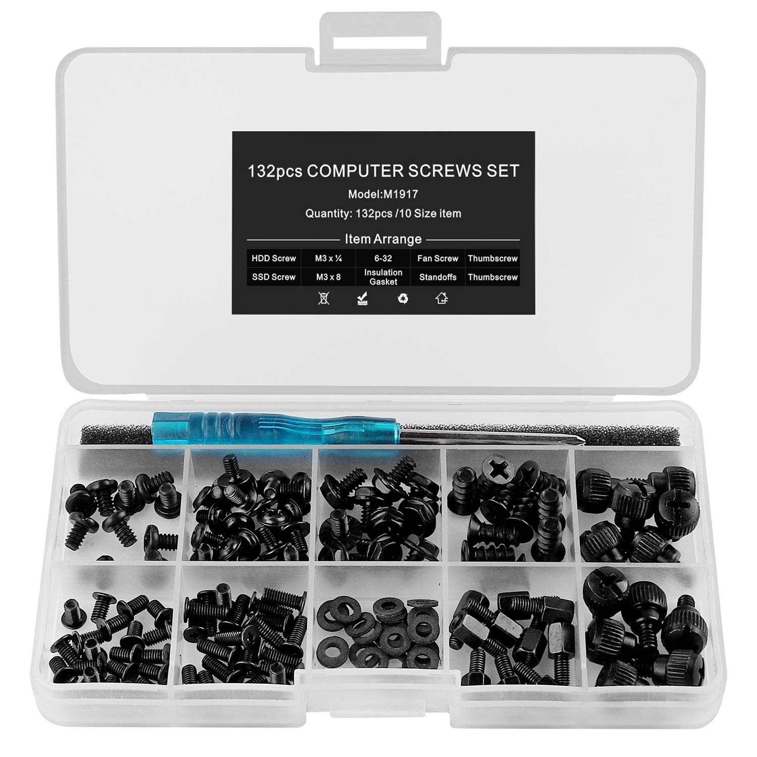 как выглядит 132pcs PC Build Repair Screw Kit with Screwdriver for Motherboard, GPU,HDD,... фото