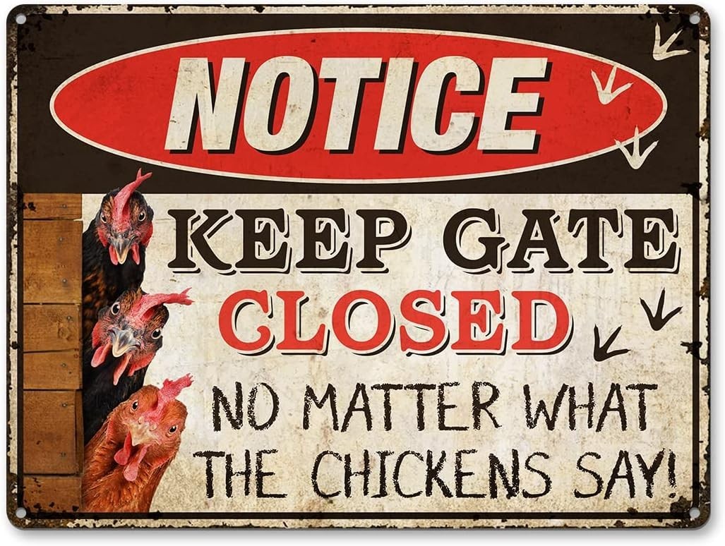 Weather-Resistant Chicken Coop Sign - Funny Keep Gate Closed Message 9x11