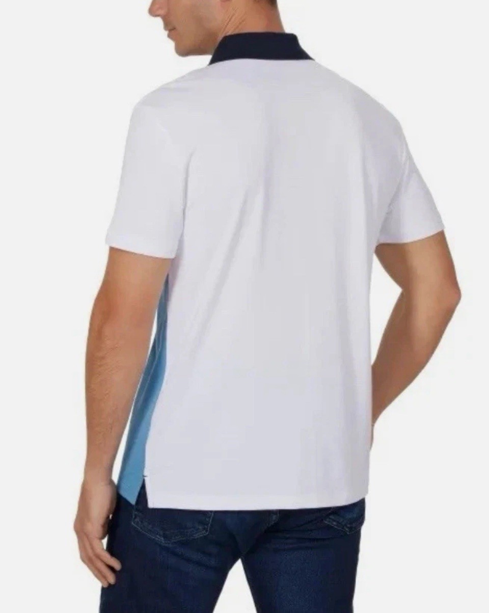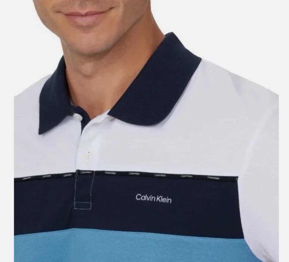 как выглядит Calvin Klein Polo Shirt, M, White Blue, Quick Dry Wicking Split Hem Short Sleeve фото
