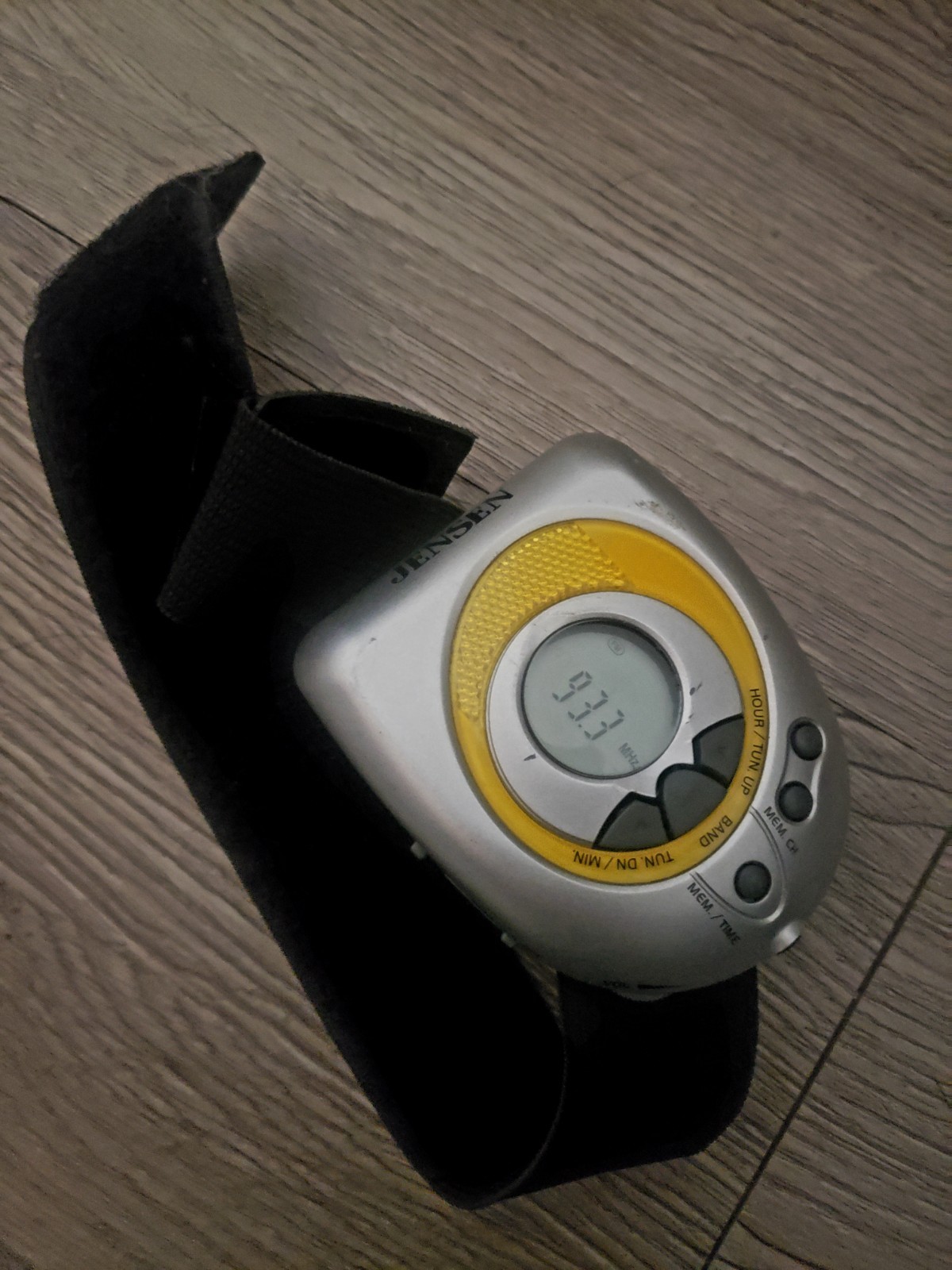 как выглядит JENSEN Sport Digital AM/FM Radio Silver Yellow SAB-55 TESTED Vintage фото