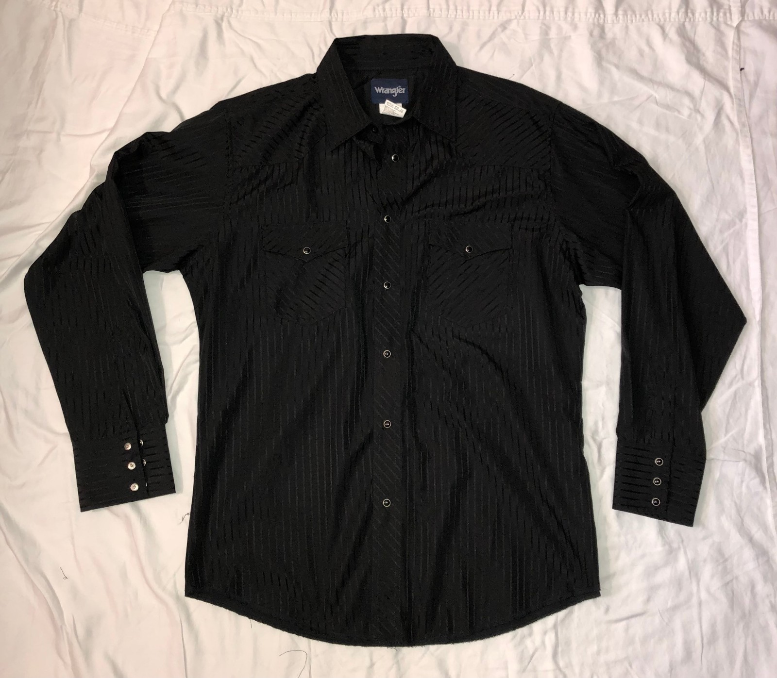 как выглядит Mens Vintage Wrangler Black Western Long Sleeve Shirt size Large фото