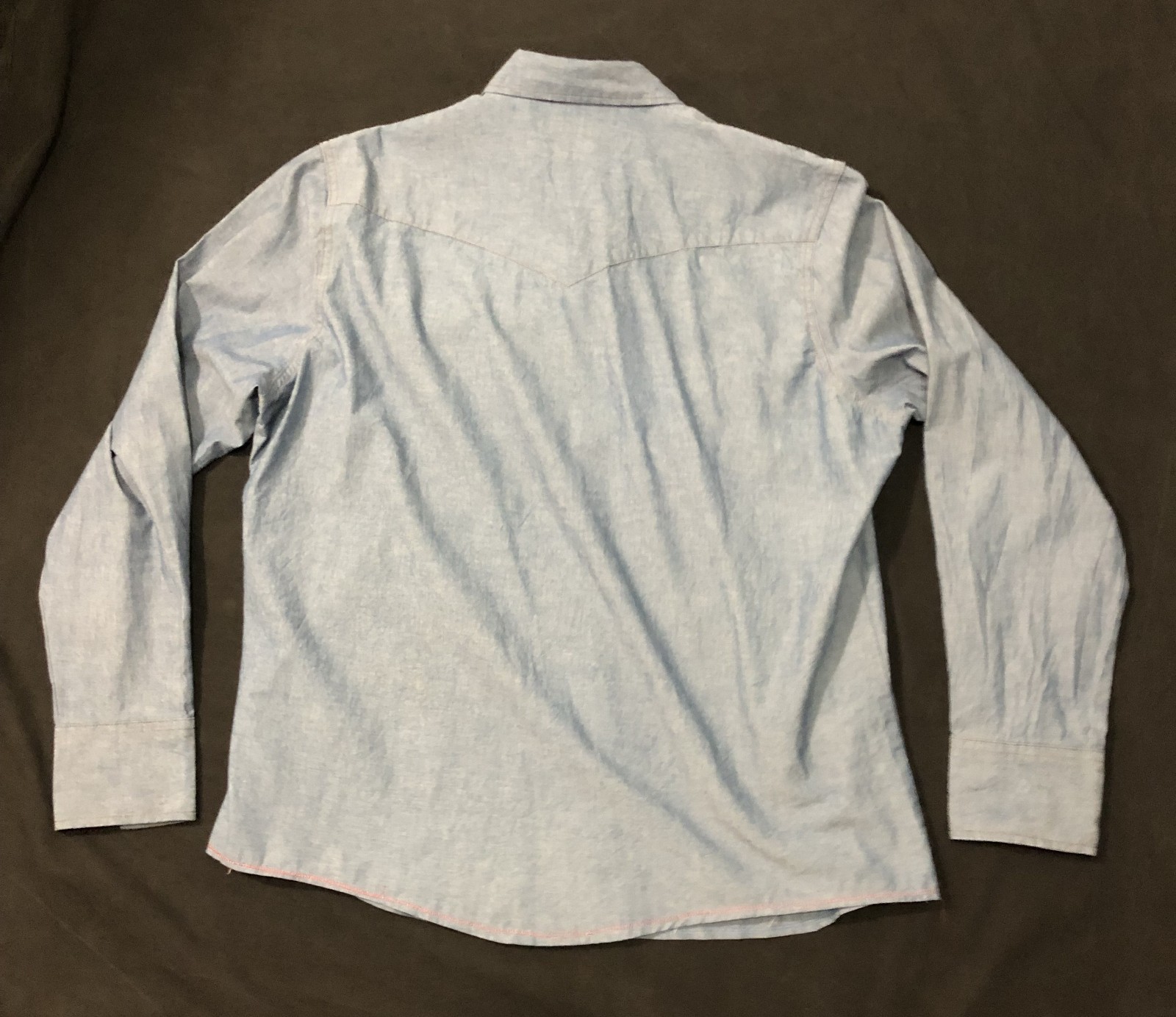 как выглядит WRANGLER Mens Sz XL Blue Chambray Long-Sleeve Pearl-Snap Classic Western Shirt фото