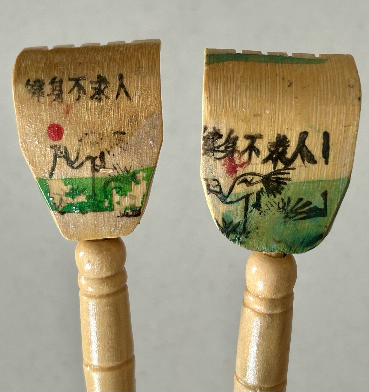 как выглядит Pair Of Vintage Bamboo Back Scratchers Wood Extendable Hand Painted Longevity фото