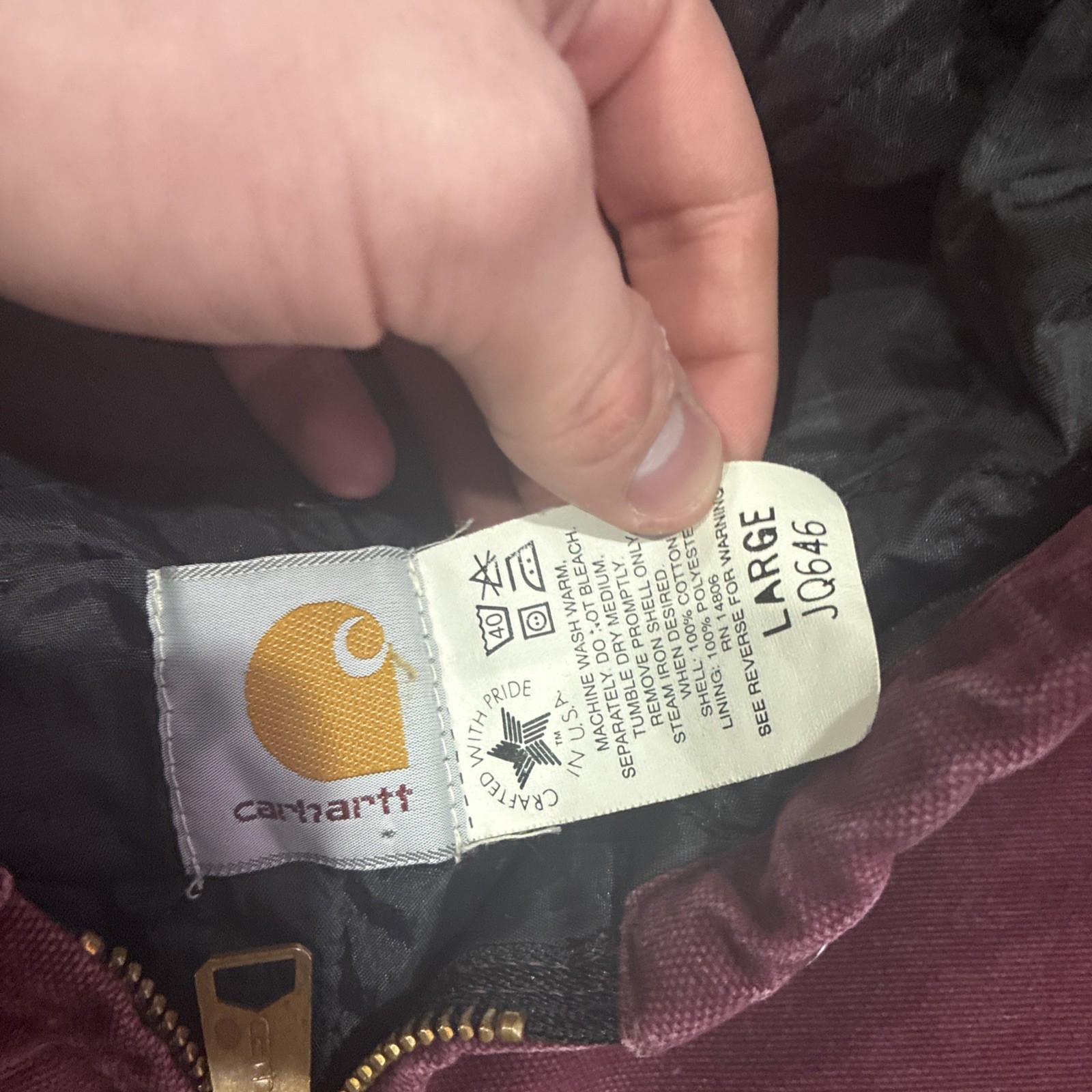 Vintage Carhartt Jacket Youth Large Plum Purple Active Hooded Quilt Lined USA