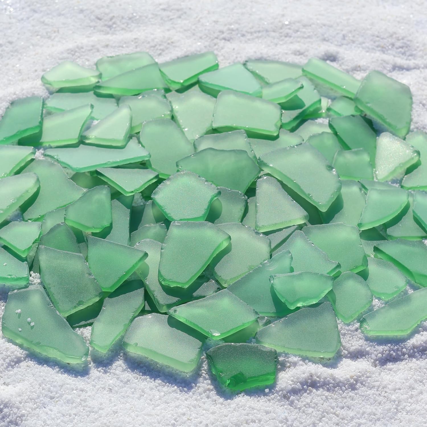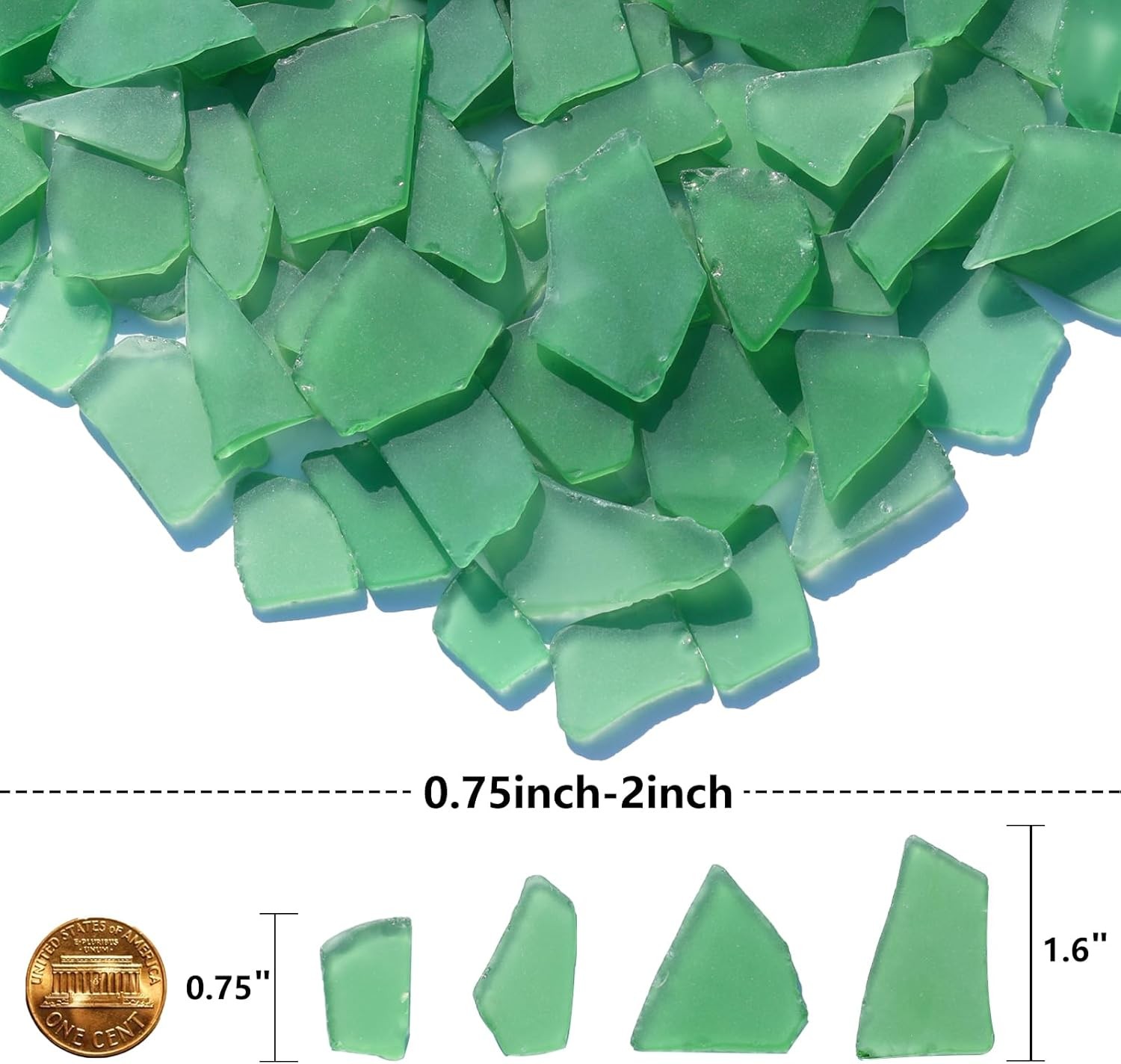 Sea Glass Pieces 34oz Green Frosted for Crafts, Decor, Aquarium Filler