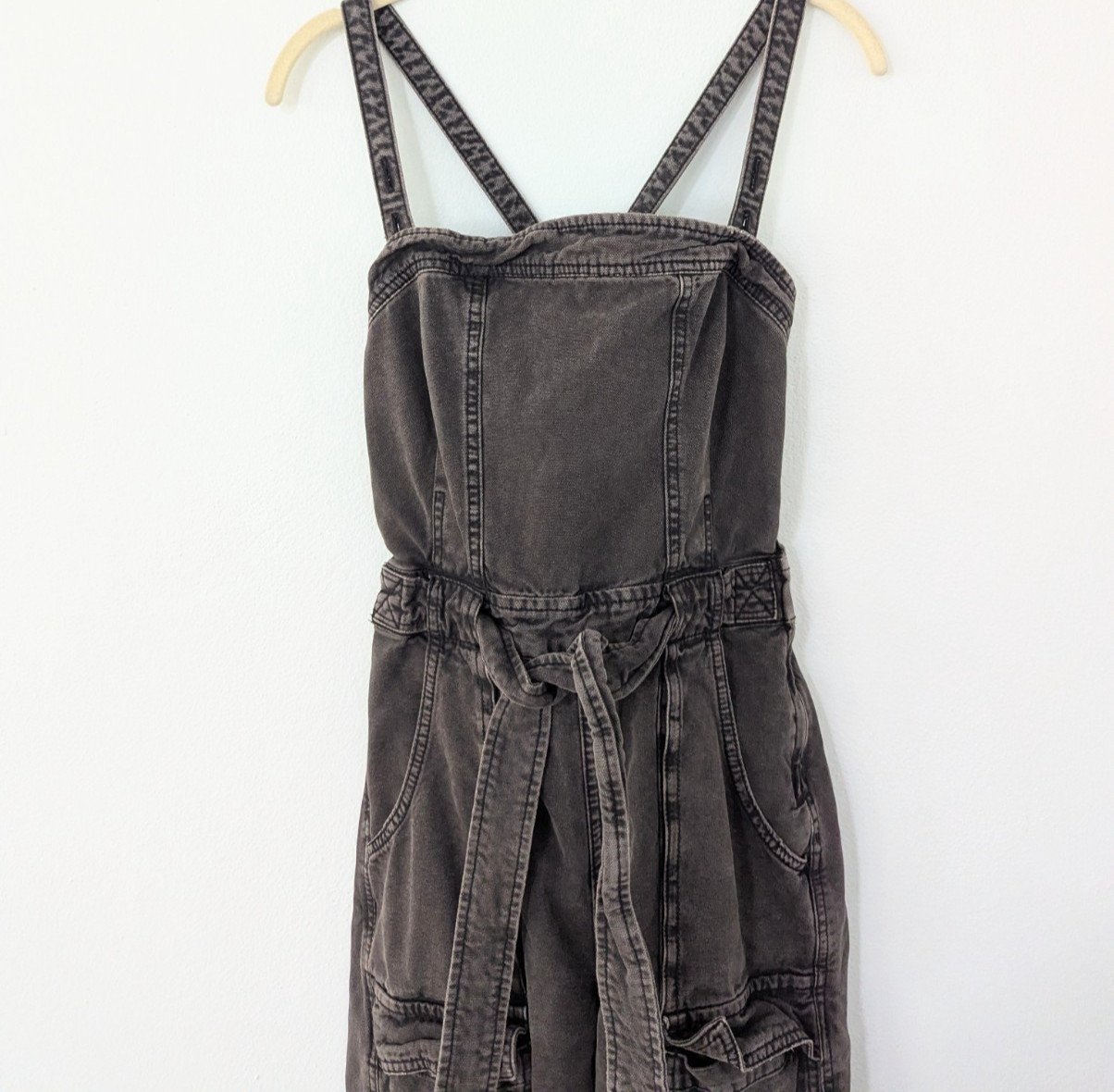 Free People Go West Utility Jumpsuit Tie Waist Cargo Tapered Brown Small S