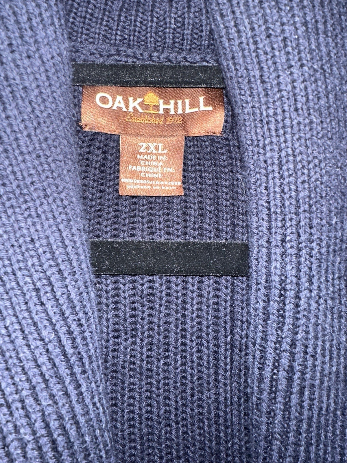 как выглядит OAK HILL XXL Navy Shawl Collar Long Cardigan Wood Look Buttons R 79 фото