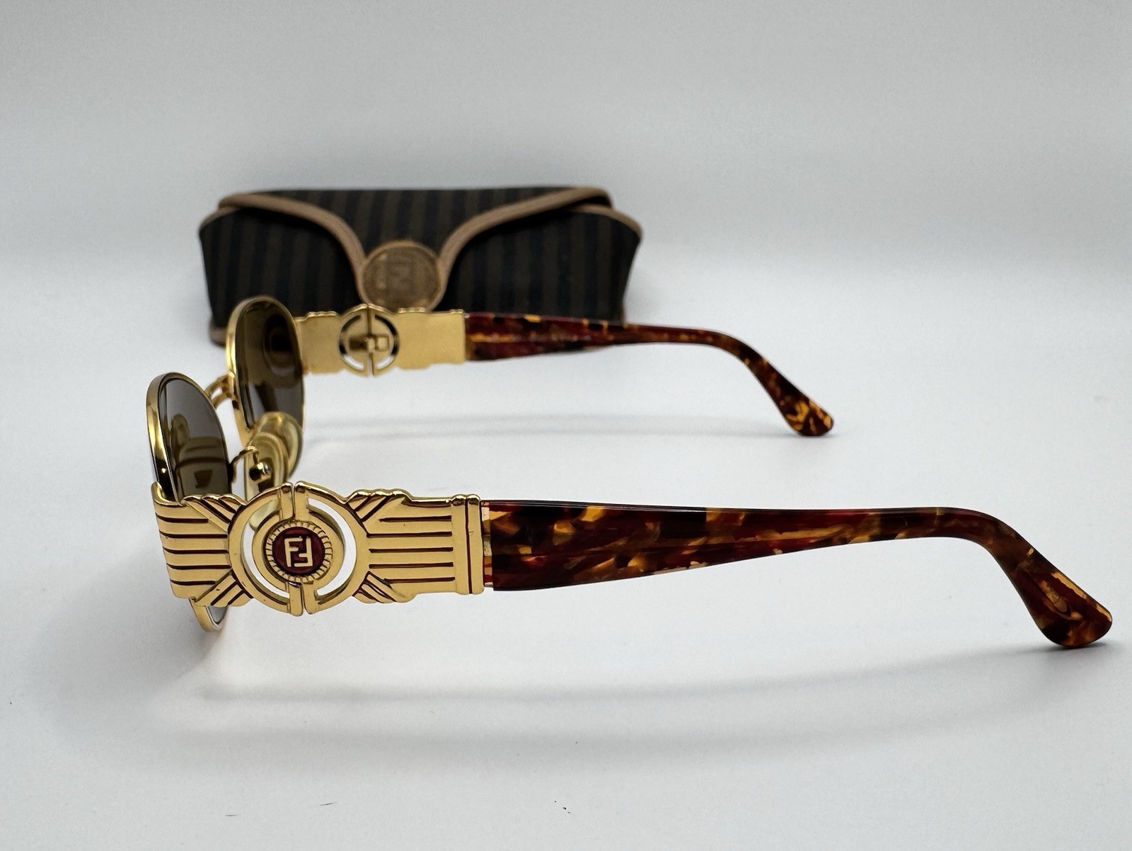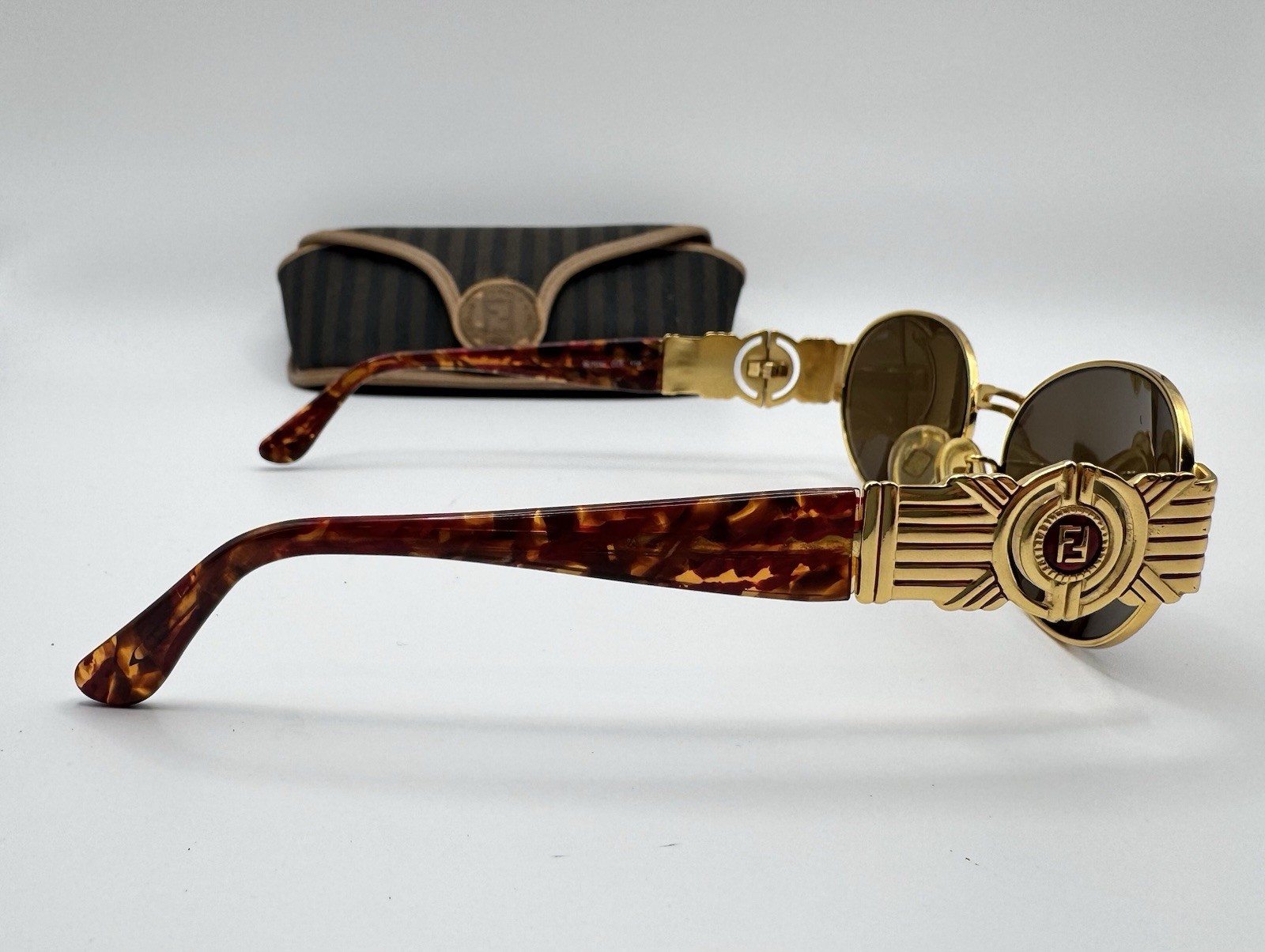 Vintage Fendi SL7034 Oval Sunglasses Gold FF Medallion Italy Y2K Rare Red