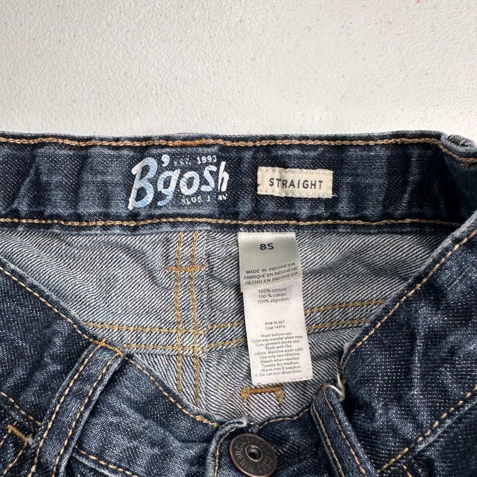 Oshkosh Bgosh Kids Straight Leg Denim Jeans 8S Dark Wash 100 Cotton Durable