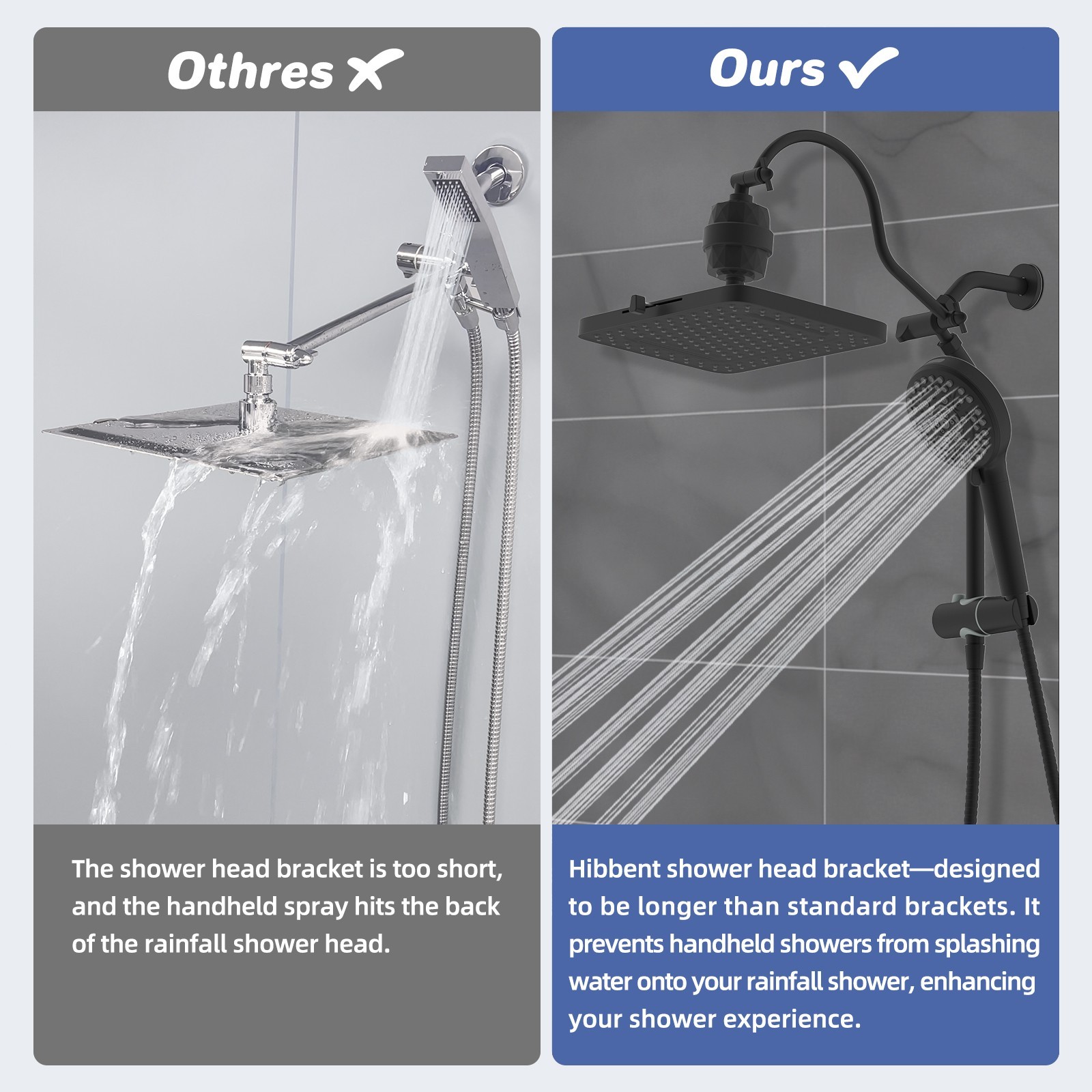 5-spray Filtered Rainfall Shower Head Combo 13'' High Pressure Showerhead Black