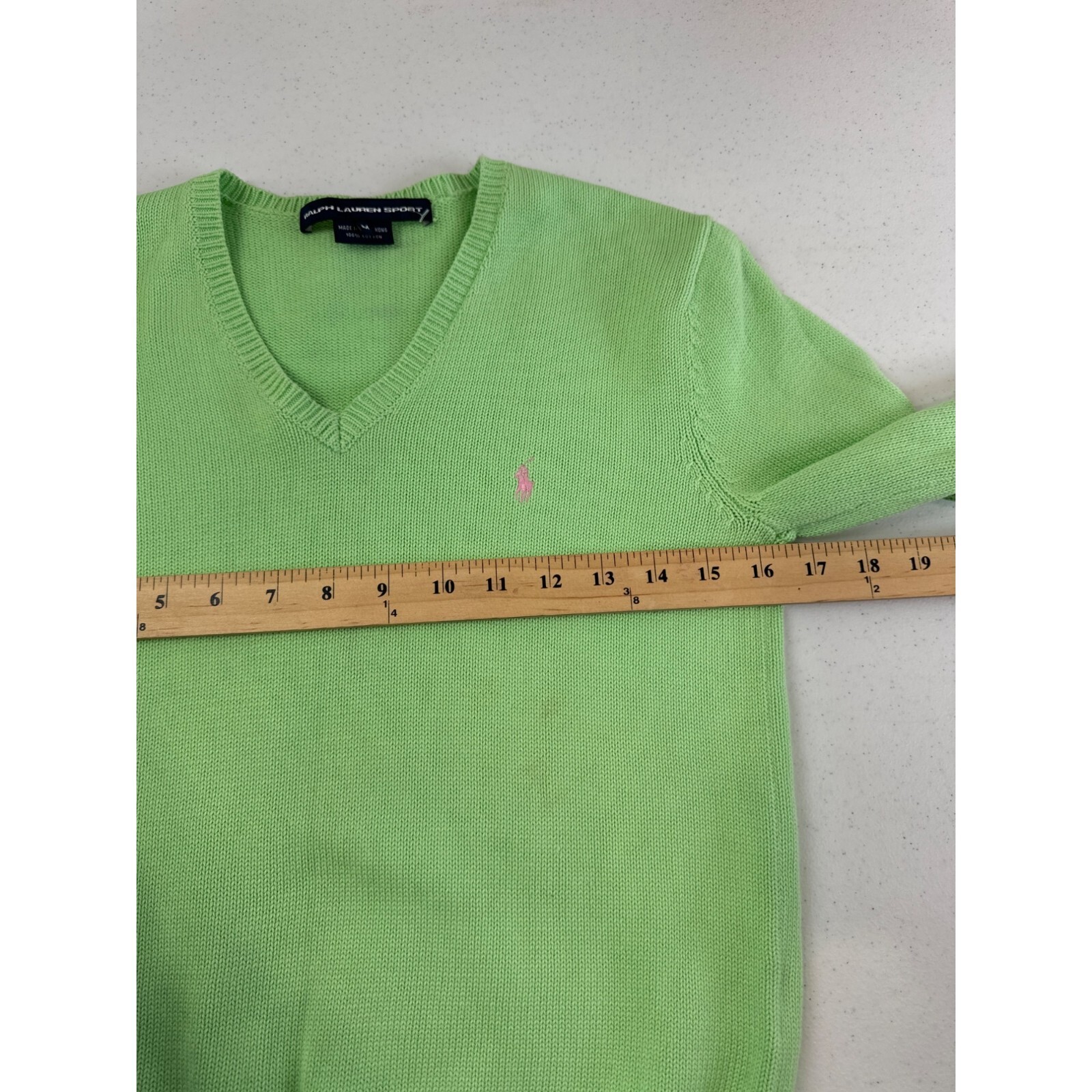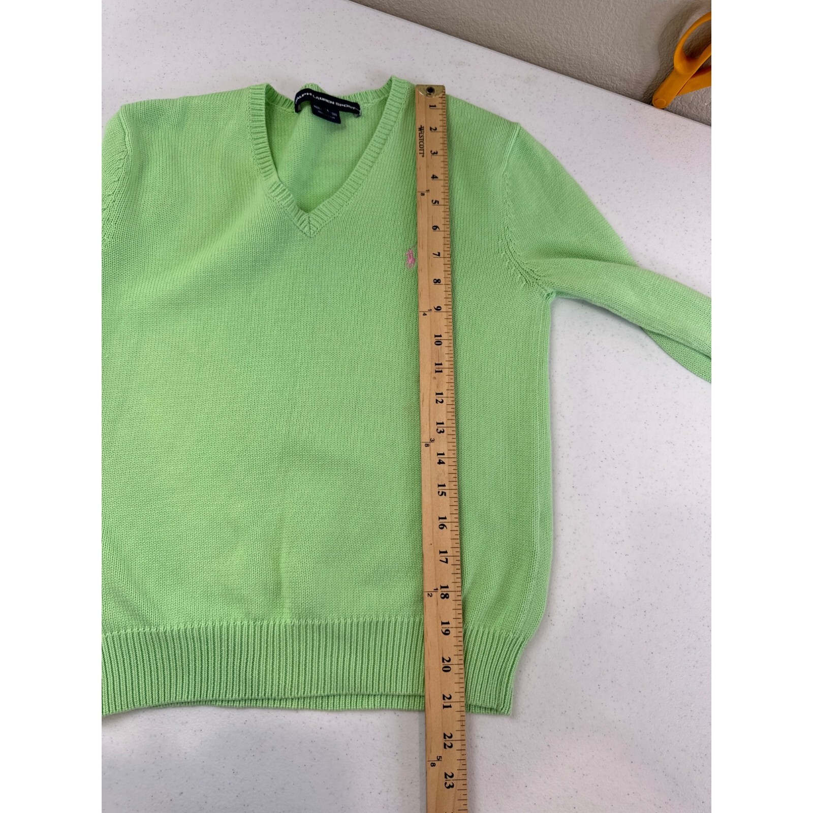 как выглядит Ralph Lauren Sport Green V-Neck Sweater M 100 Cotton Vintage Y2K Preppy фото