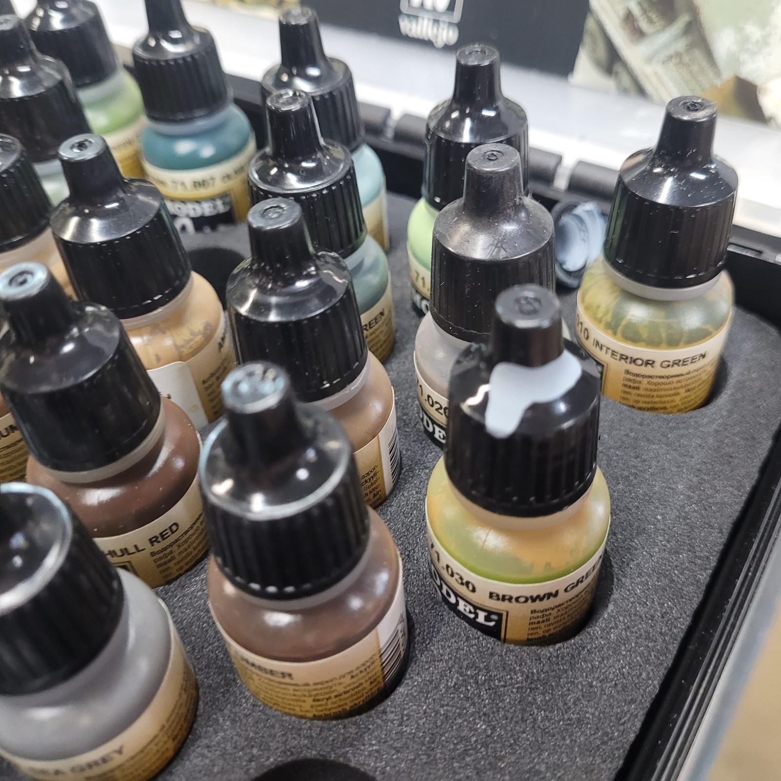 Acrylicos Vallejo Model Air Paint Set - Some New, Some used, paint spilled