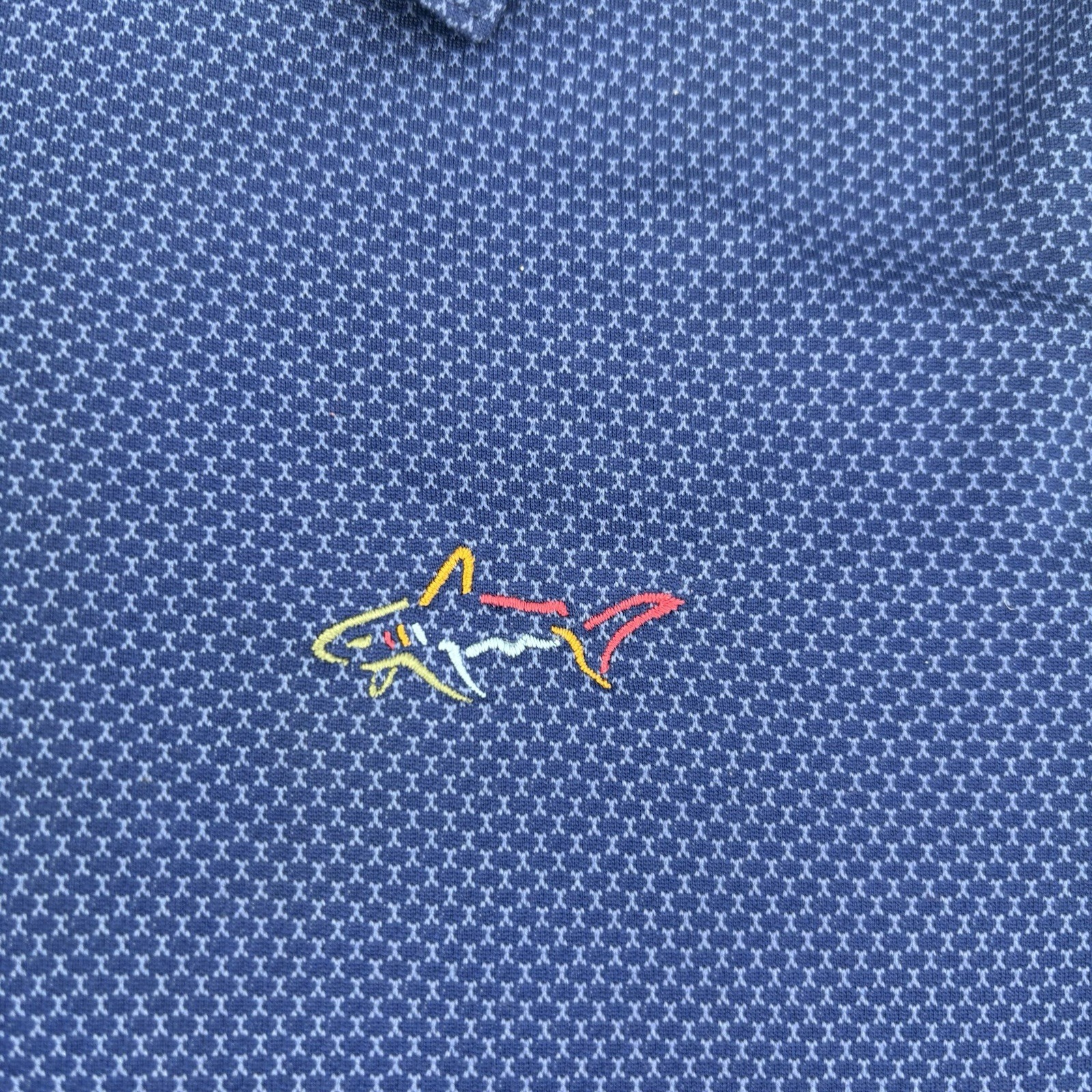 как выглядит Greg Norman Mens Size XL Navy Blue Geometric Performance Golf Polo Shirt фото