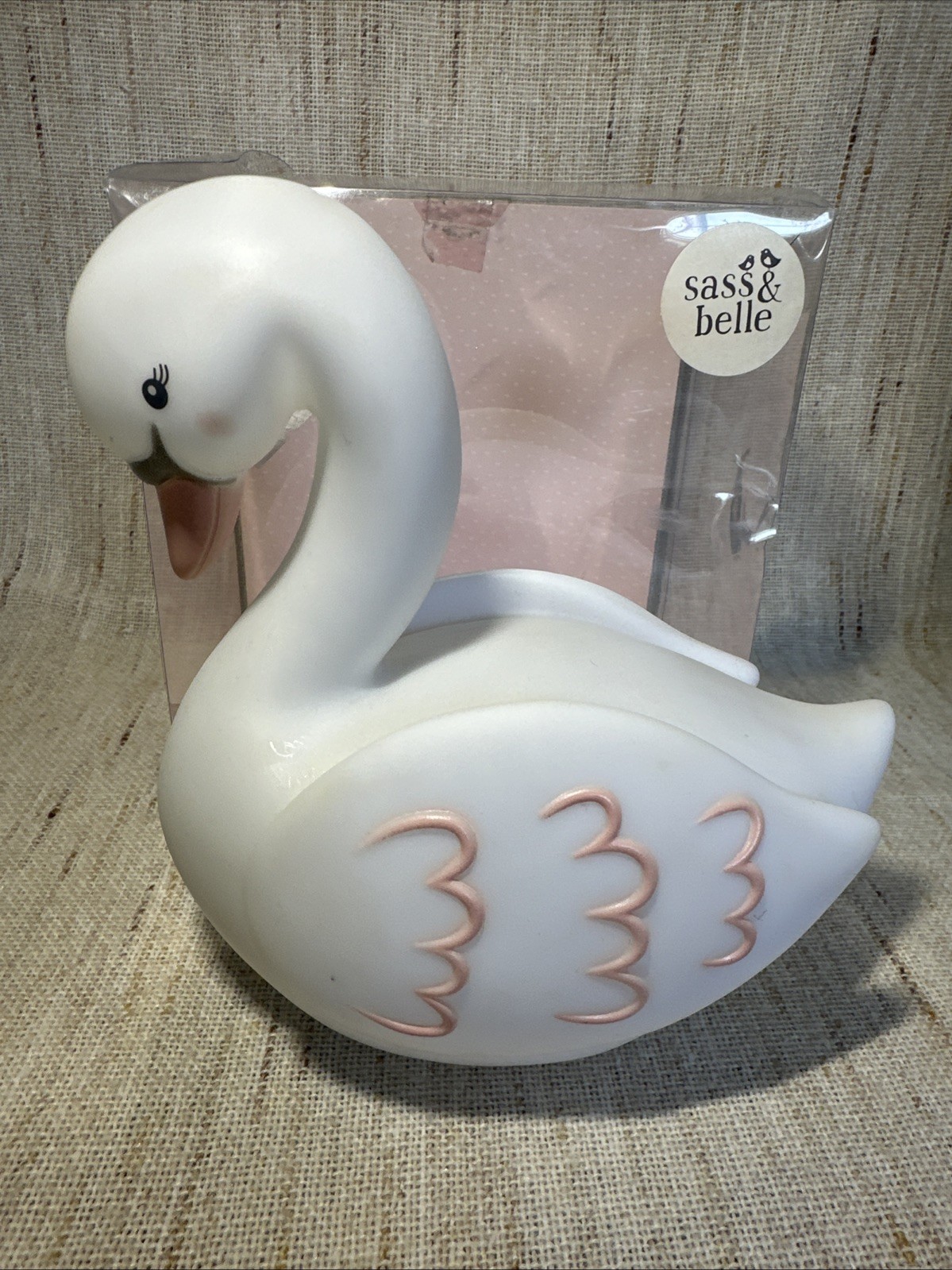 Cute Sass Belle Freya Swan Nightlight Pink White Kids Nursery Light Fades Off