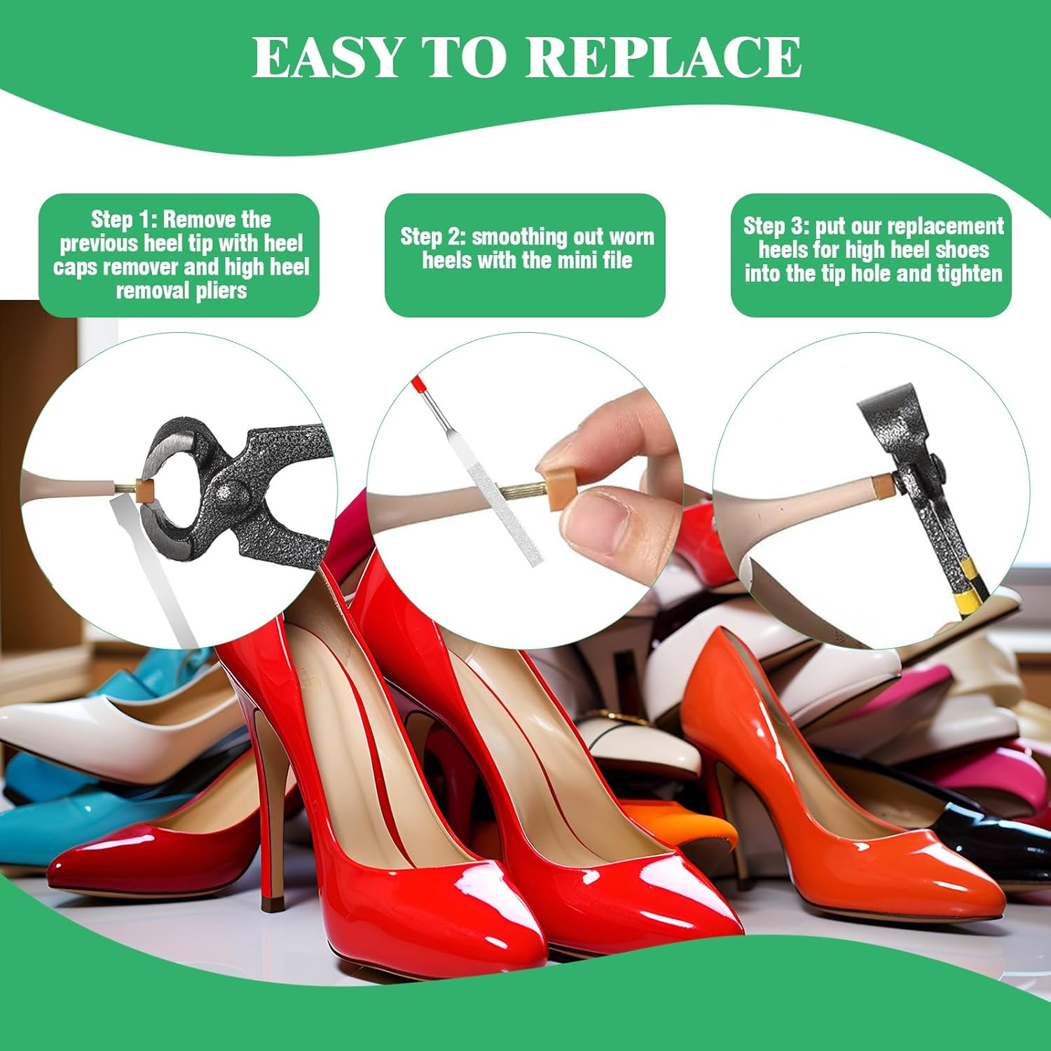 75Pcs High Heel Replacement Tips Assortment Set with Repair Tools,