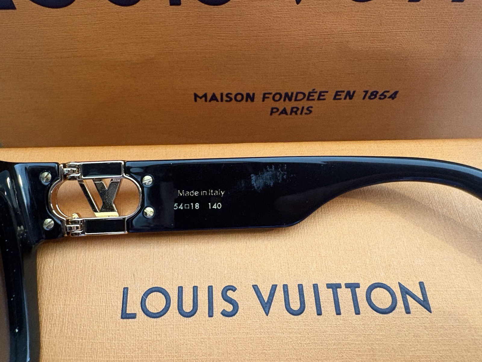 как выглядит Louis Vuitton LV Link Square Sunglasses Black Gold Z1566E 54-18 Italy Full Set фото