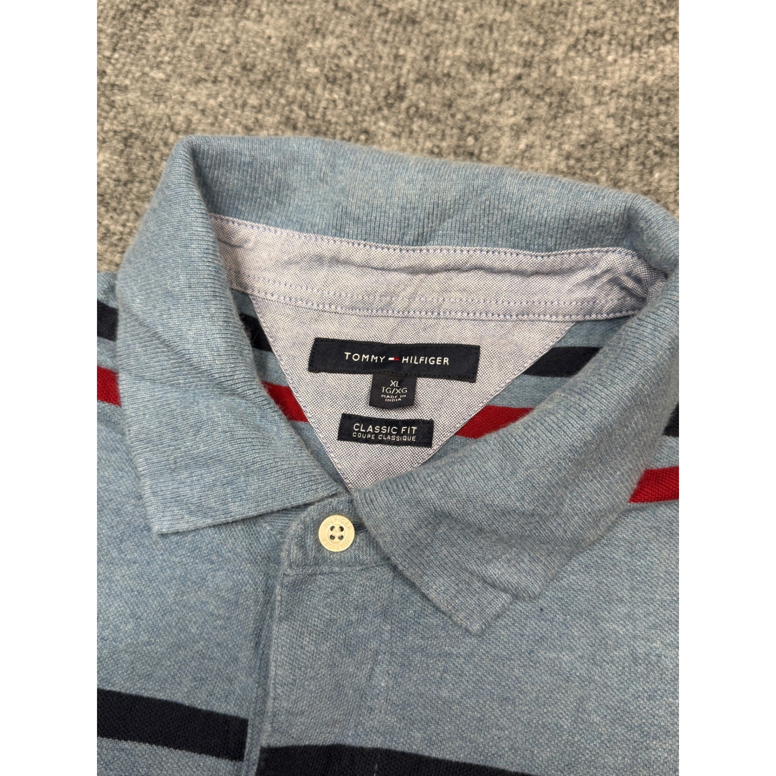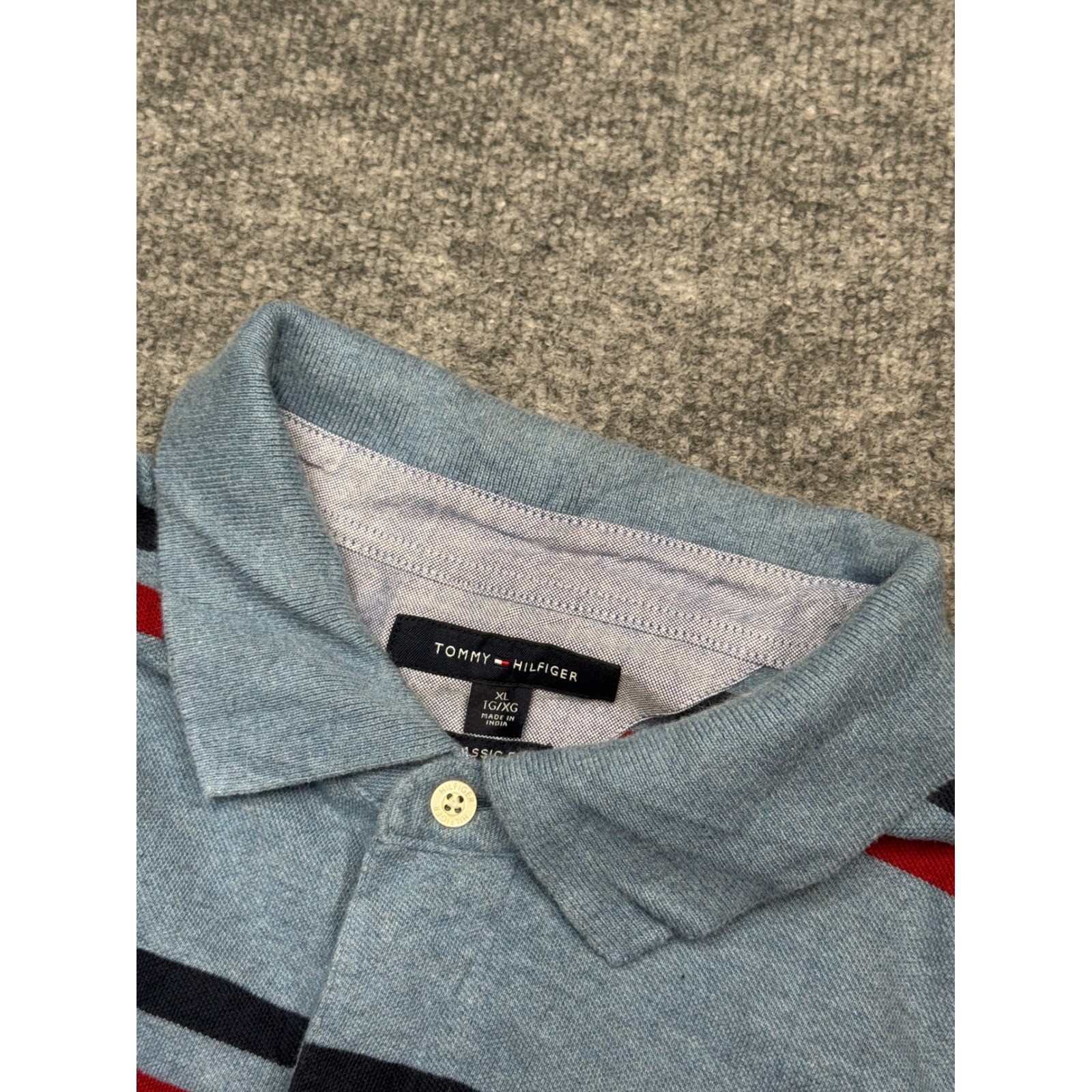 Tommy Hilfiger Mens XL Classic Fit Striped Polo Shirt Blue Red Navy Short Sleeve