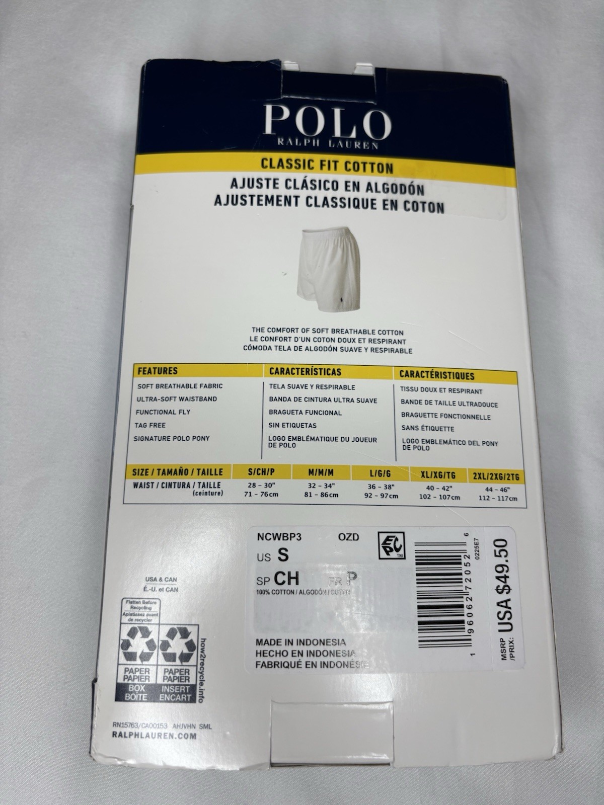 как выглядит Polo Ralph Lauren NCWBP3 Classic Fit Woven Boxer - 3 Pack Small NEW Sealed фото
