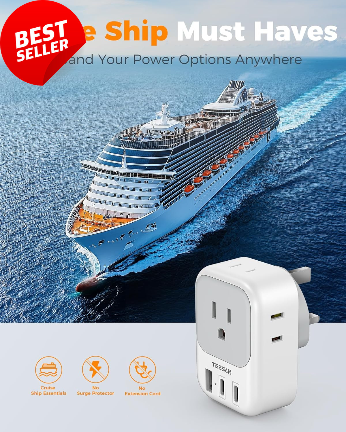 как выглядит US to UK Plug Adapter 2 Pack Type G 4 Outlets 3 USB C Travel фото