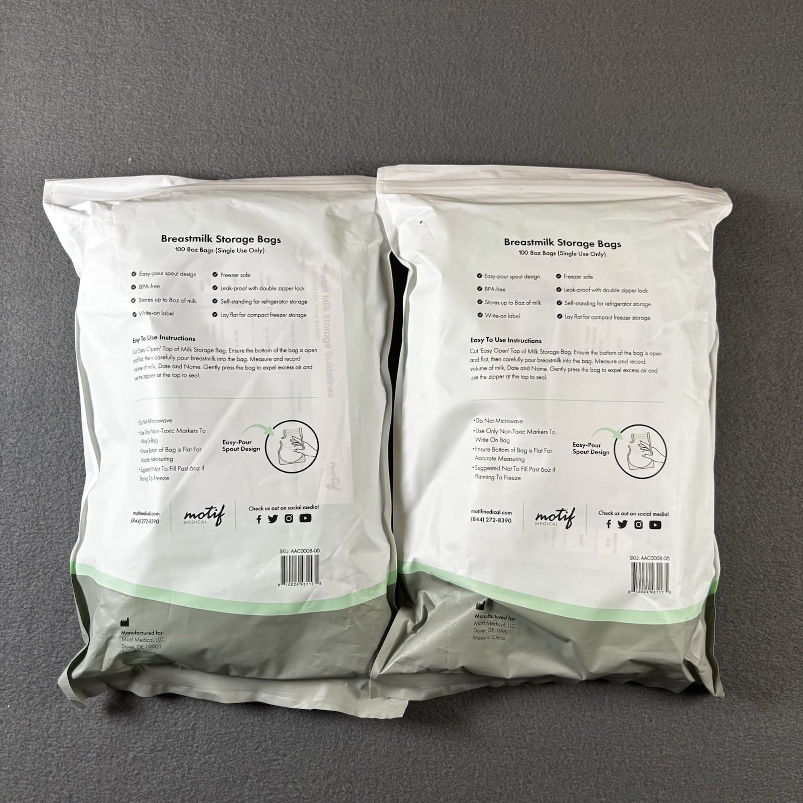 Motif Medical Breast Milk Storage Bags 6oz Single Use 100 count Lot of 2 200