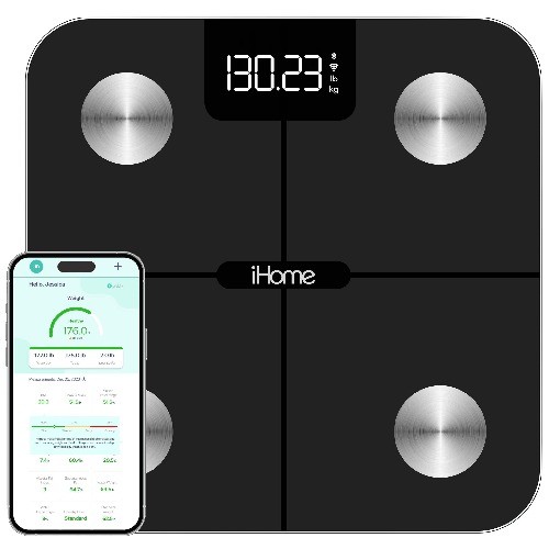 iHome Smart Wi-Fi Digital Battery Powered Bathroom Scale, Body Weight BM