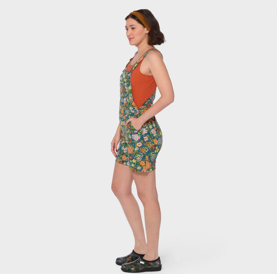 DULUTH Women's Heirloom Gardening 7 Short Overalls, Midnight Green Monarchs NE